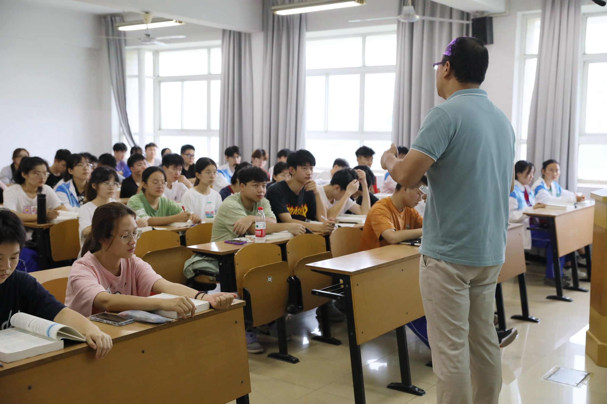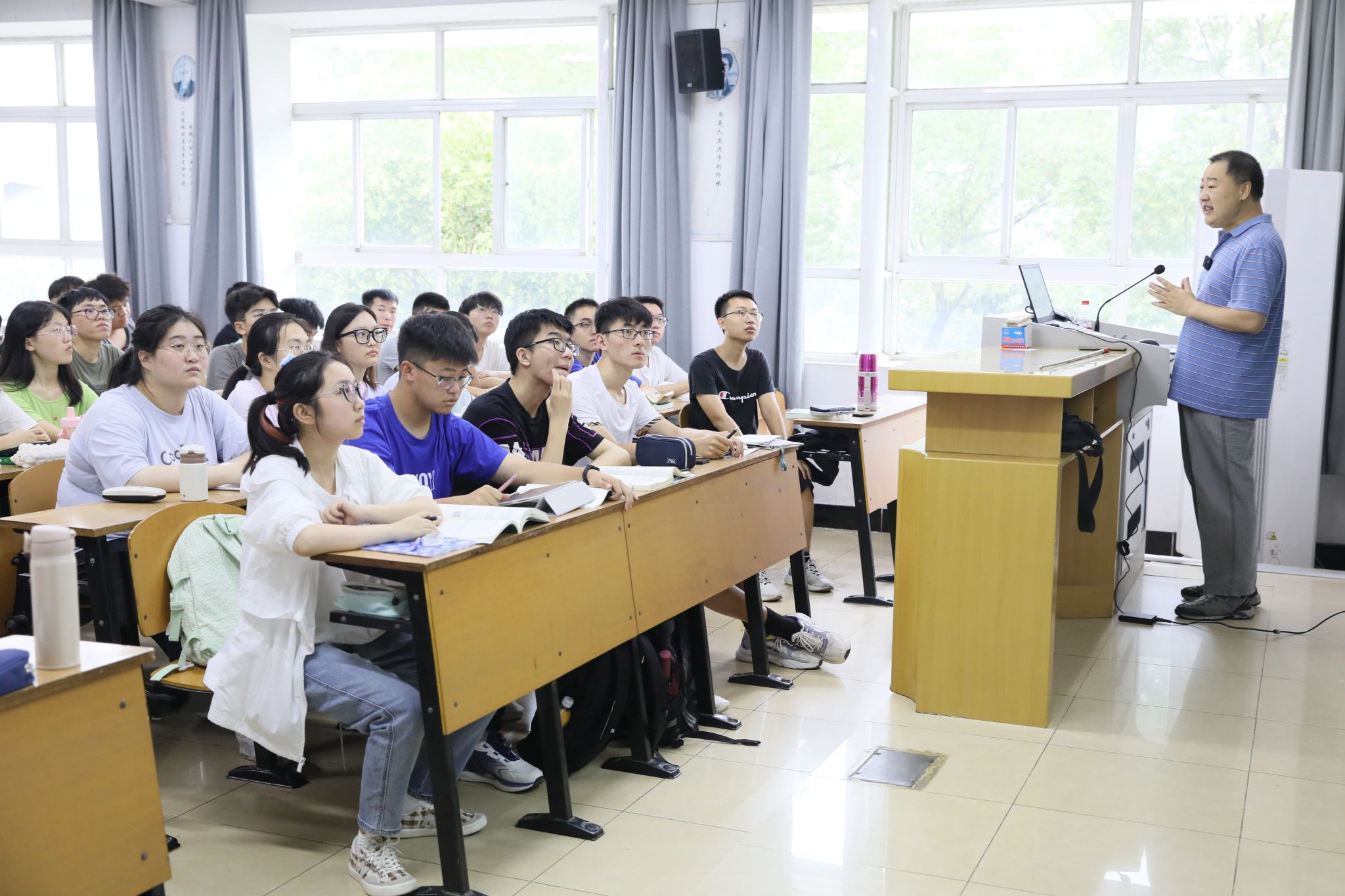 校园课堂内外,师生展现出了良好的精神风貌。任课教师教学准备充分、方法新颖,同学们精神饱满、认真听课,师生互动良好,课堂气氛活跃,教学秩序井然。