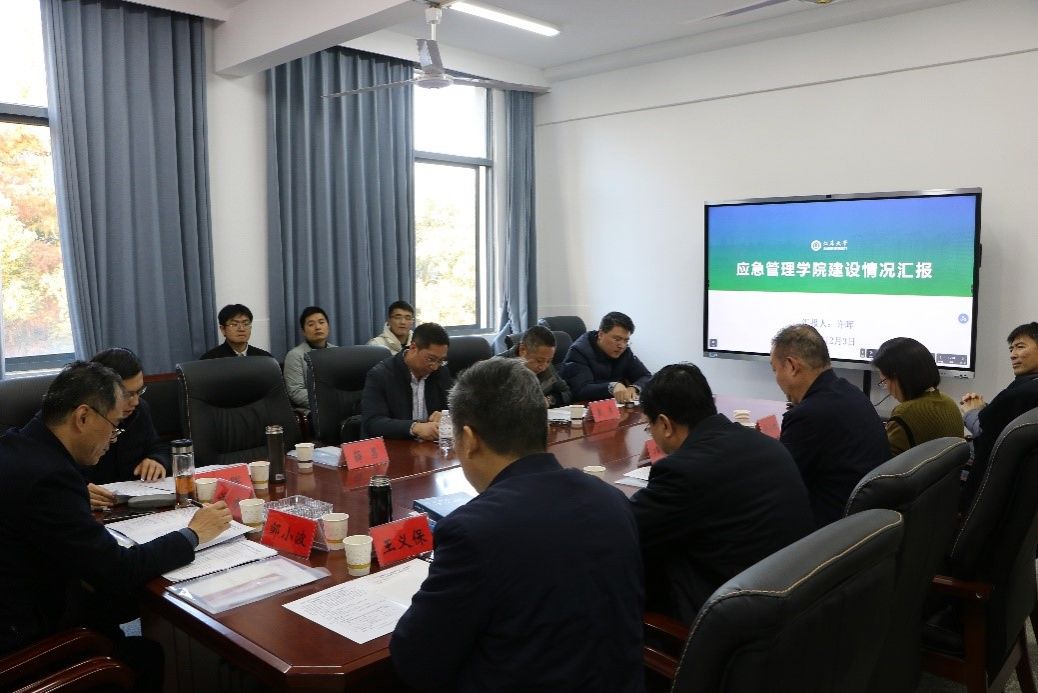 会上,各高校院长详细汇报了江苏省重点应急管理学院的建设成果和实践经验。许晖代表我校介绍了应急管理学院的建设情况,强调了学院在协同育人机制建设、学科和专业建设、师资队伍建设、实验实训条件、教学改革和人才培养以及科技创新和社会服务等六个方面取得的进展以及面临的机遇与挑战。