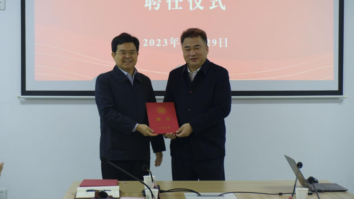 王文生客座教授聘任仪式在一站式服务中心会议室举行。李洪波为王文生颁授了多宝网页版客座教授聘书并佩戴多宝网页版校徽。他向镇江市公安局一直以来对我校安全稳定工作的支持与关心表示感谢,希望进一步加强警校合作,助力我校法治人才培养质量提升。