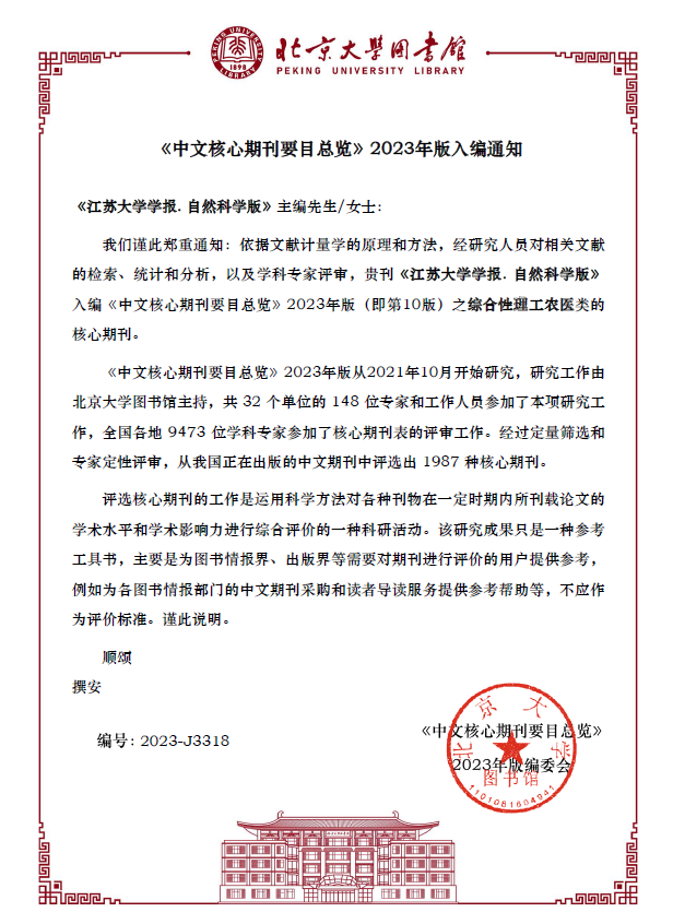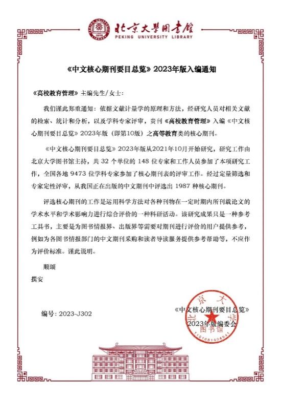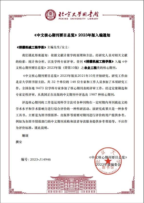 近日,在北京大学图书馆《中文核心期刊要目总览》2023年版(第10版)遴选中,我校主办的《多宝网页版学报(自然科学版)》第8次入选,入编综合性理工农医类核心期刊;《排灌机械工程学报》第7次入选,入编农业工程类核心期刊;《高校教育管理》第4次入选,入编高等教育类核心期刊。