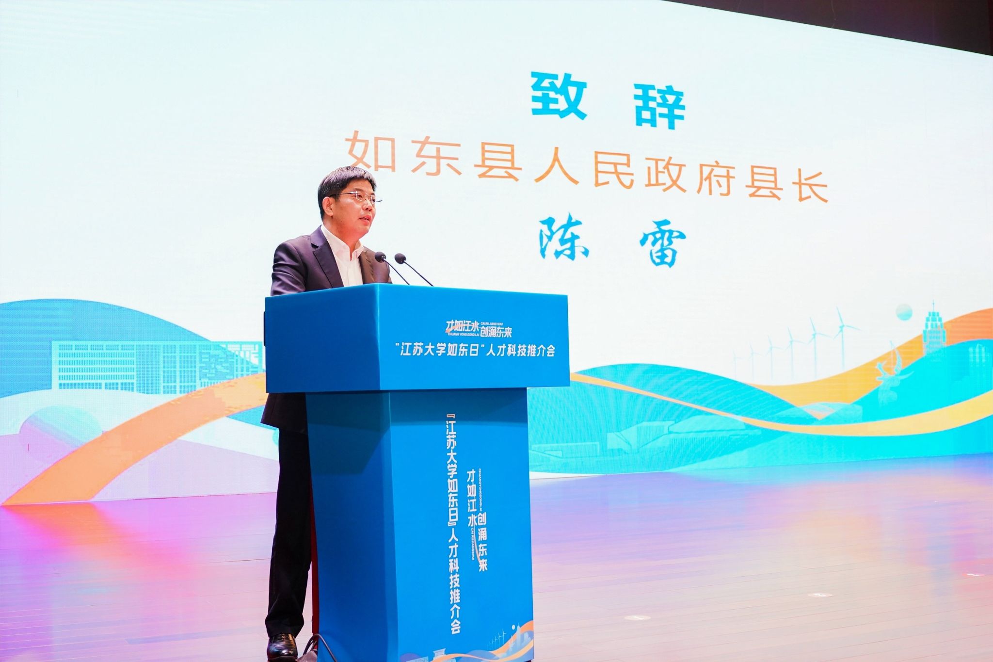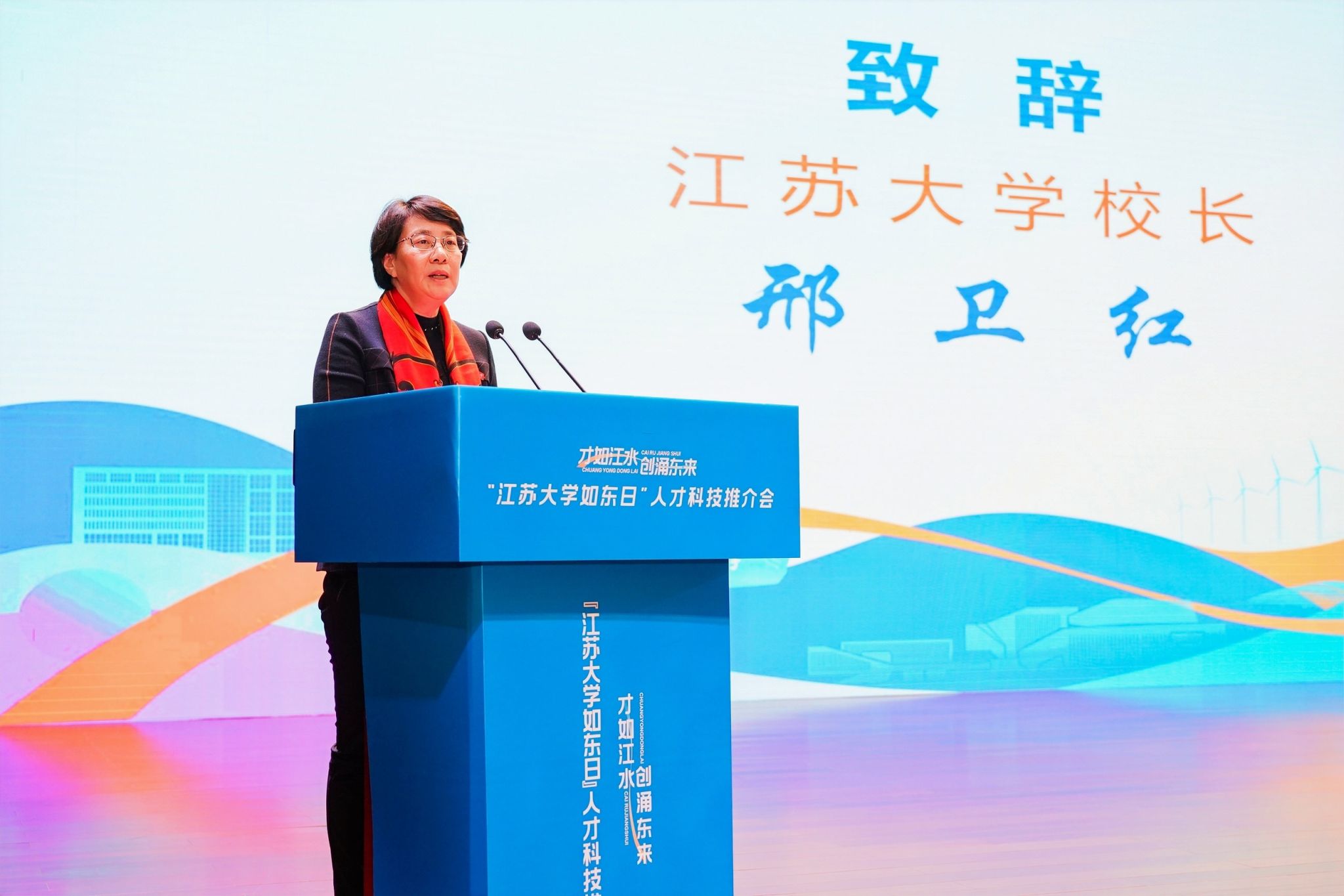 12月29日,“才如江水 创涌东来”——“多宝网页版如东日”系列人才科技推介会在学校小礼堂举行。校长邢卫红,副校长任旭东、蔡英凤出席活动;如东县人民政府县长陈雷率队参会,会议由如东县副县长刘莉主持。
