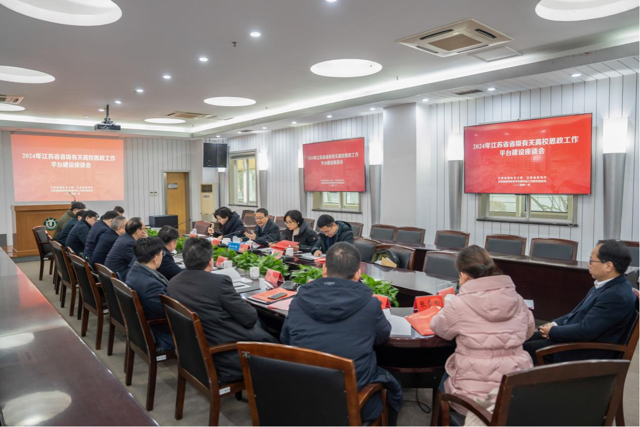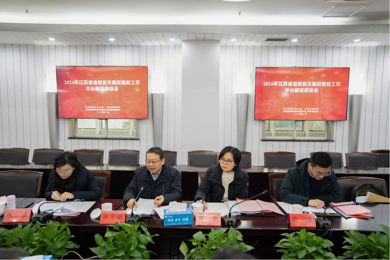 1月25日,2024年江苏省省级有关高校思想政治工作平台建设座谈会在我校举行。省教育厅一级巡视员徐子敏,南京工业大学党委常委、副校长刘大卫,苏州大学党委常委、副校长查佐明,南通大学党委常委、副校长吉明明,多宝网页版党委常委、副校长任旭东,南京师范大学党委常委、宣传部部长宋喆,省教育厅社政处处长邹燕、一级主任科员陈磊、挂职干部熊潇,以及省网络思政中心(易班中心)、8个省级高校辅导员培训与研修基地负责人参加座谈会。