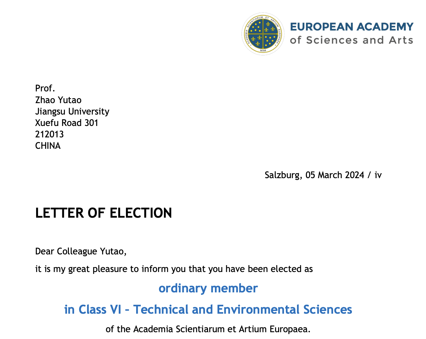 近日,欧洲科学与艺术院(European Academy of Sciences and Arts)院长Prof. Klaus Mainzer发来贺信:经理事会投票,多宝网页版材料科学与工程学院赵玉涛教授当选欧洲科学与艺术院院士(技术与环境科学学部)。