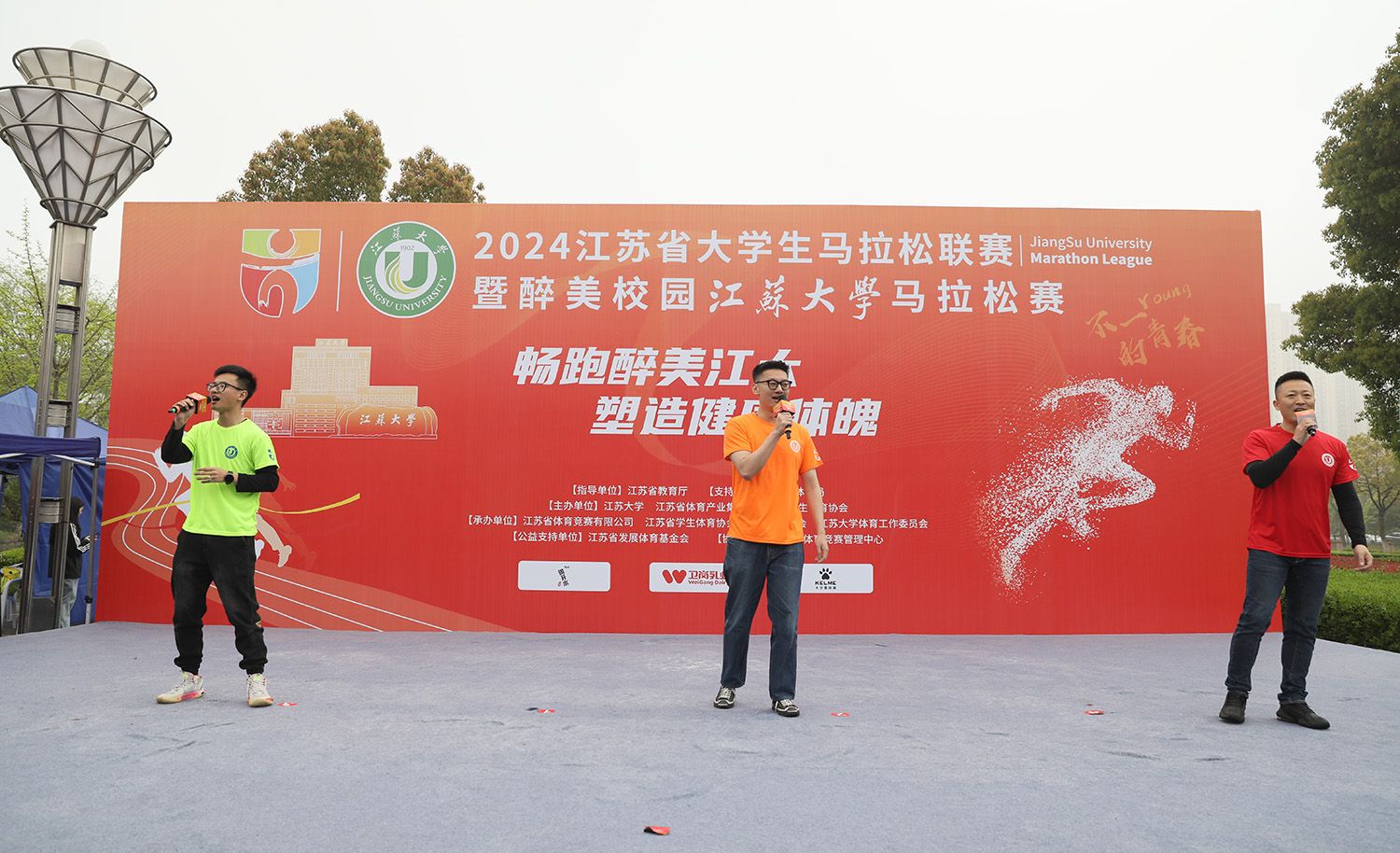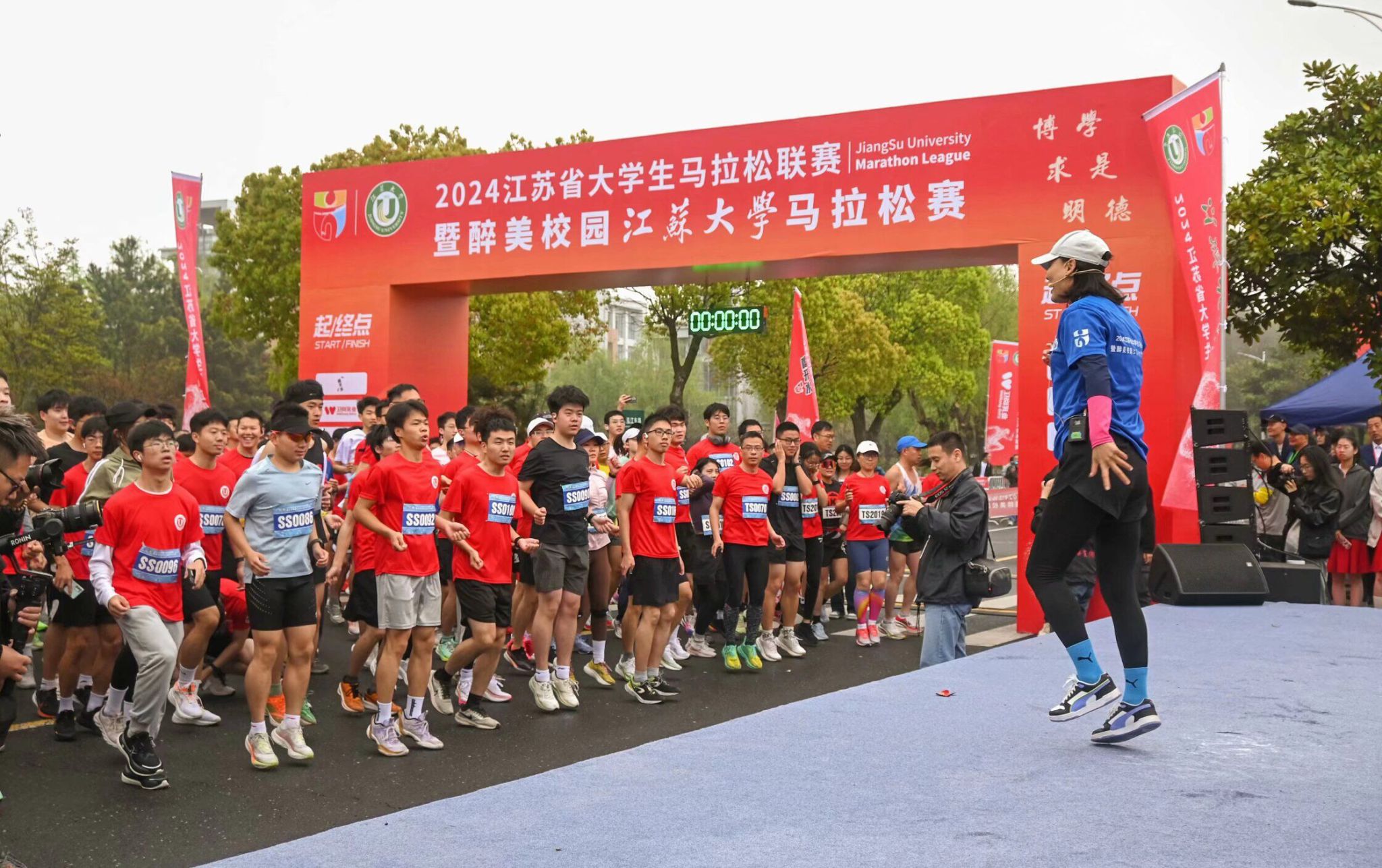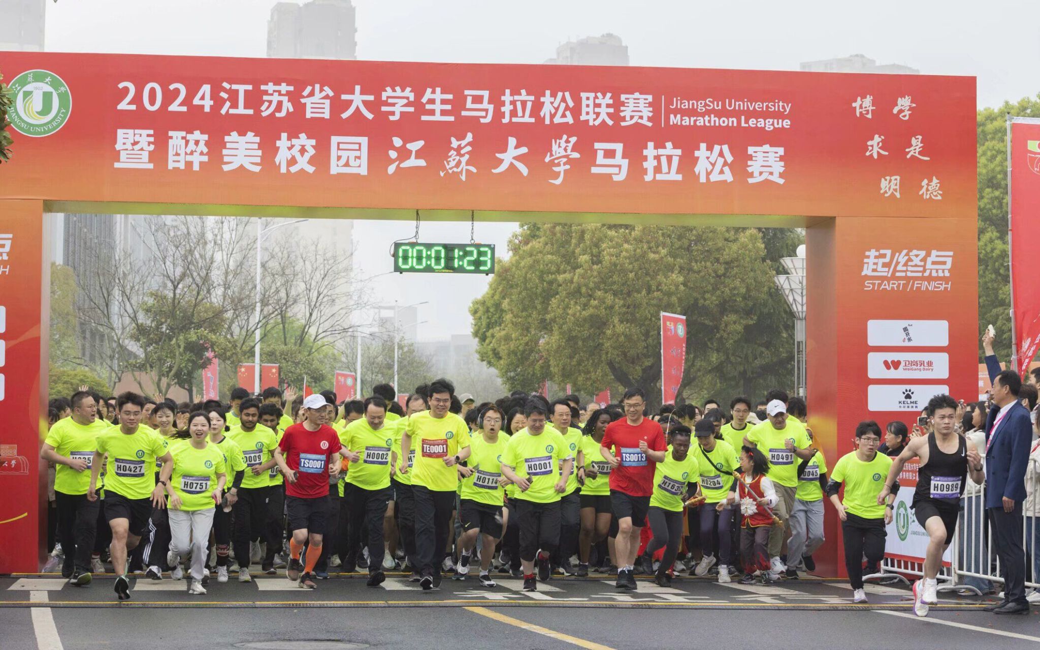 校党委书记李洪波,副校长邹小波、任旭东,校友代表、南京秦淮风光股份有限公司副总经理刘润,学校各有关单位领导,各地校友与师生选手等参加起跑仪式。