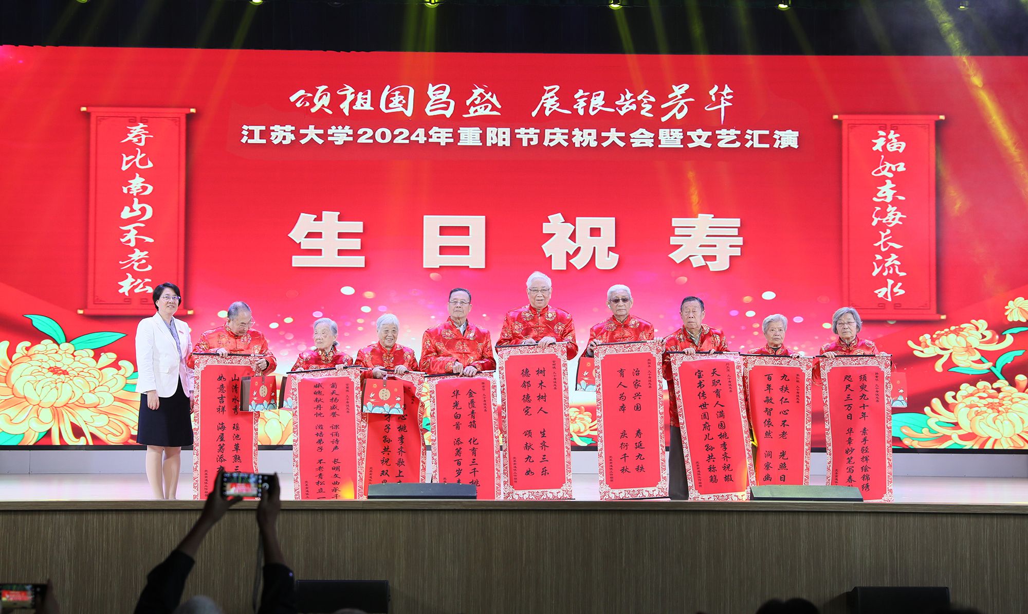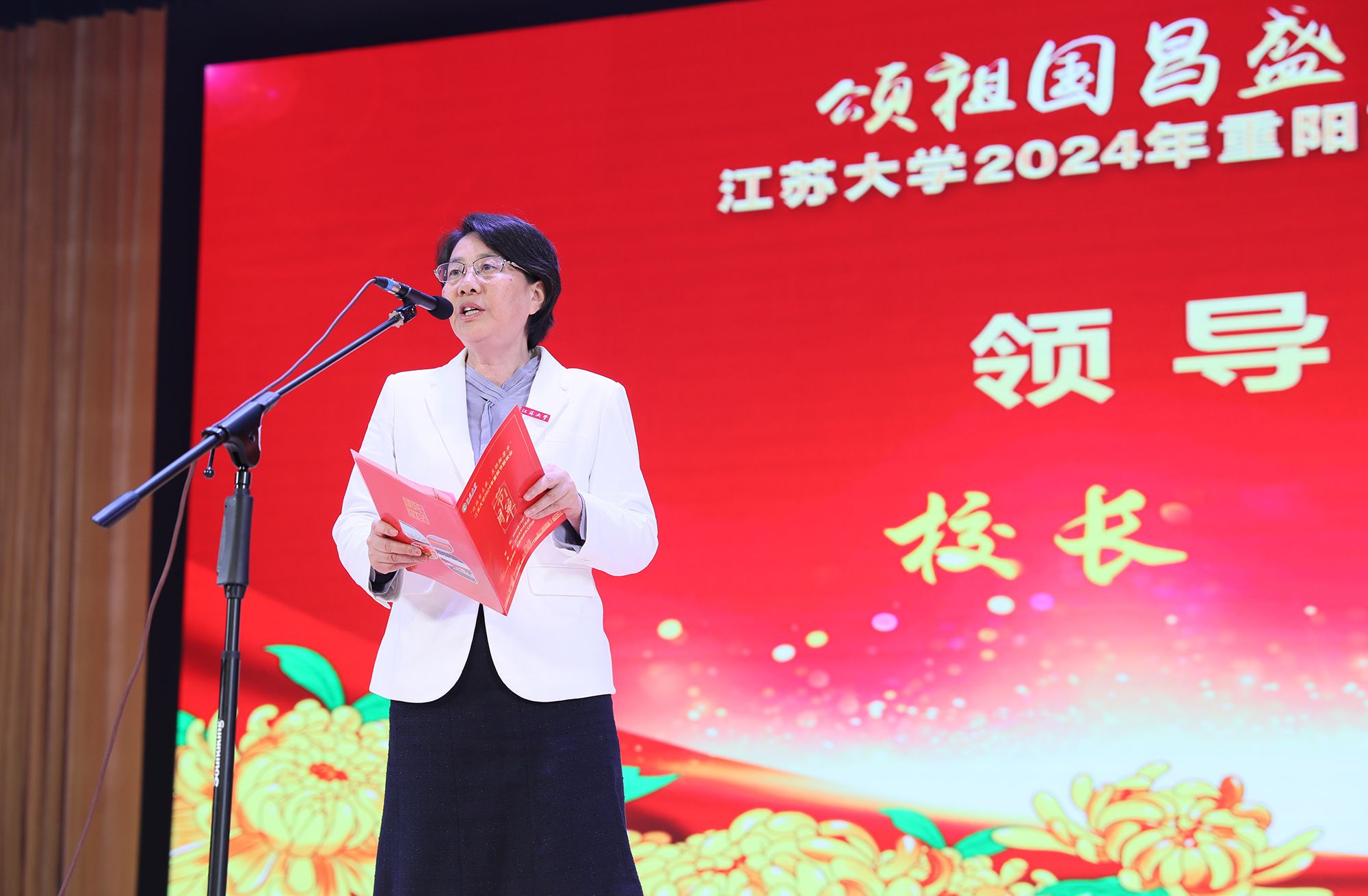 10月10日,在重阳节来临之际,我校在大礼堂隆重举行“颂祖国昌盛,展银龄芳华” 2024年重阳节庆祝大会暨文艺汇演,近千名老同志齐聚一堂,共度佳节。校长邢卫红,副校长李红、王景全出席会议。部分老领导、相关职能部门领导和二级党组织书记参加会议。