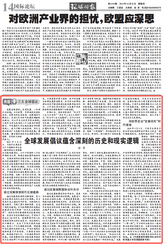 10月10日,多宝网页版全球发展与安全研究院理事长、教育部哲学社会科学研究重大专项课题首席专家徐步在《环球时报》第14版发表长篇理论文章《全球发展倡议蕴含深刻的历史和现实逻辑》,就全球发展倡议和全球发展命运共同体理念的内在逻辑、现实意义和时代价值提出创新性观点。