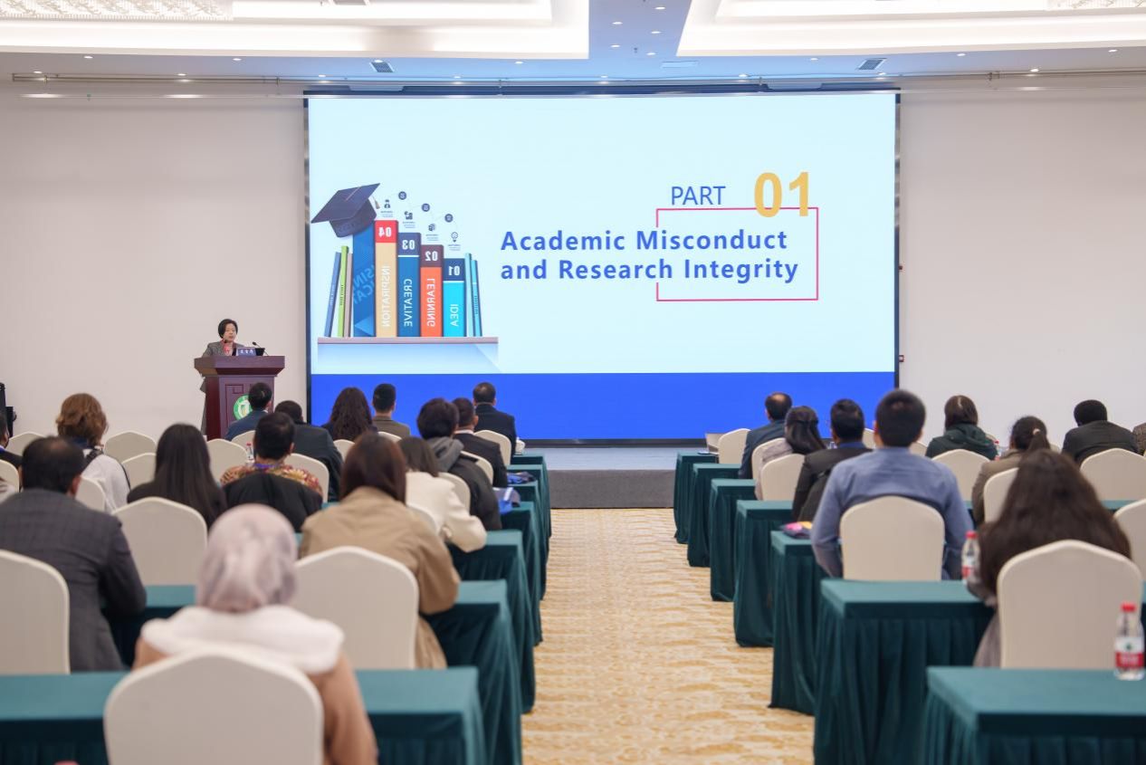 研讨会特邀四位专家作主旨报告。南京航空航天大学教授彭聪围绕来华留学生如何加强学术诚信和规范进行了深入探讨,系统阐述了诚信写作的核心价值与具体实践方法。南京理工大学教授陈翔就在中韩两国的求学和工作经历进行了深入分享,探讨了留学研究生如何应对文化适应与学术研究的双重挑战。东南大学教授浦正宁就国际研究生如何更好地适应和融入中国特色研究生培养体系进行了深入解读,结合中国作为全球第二大研究生培养国的优势,为在场留学生提供了切实可行的适应策略。多宝网页版教授张琪就科学写作中的关键技巧与常见陷阱进行了深入剖析,详细阐述了如何在竞争激烈的学术领域撰写高质量论文。