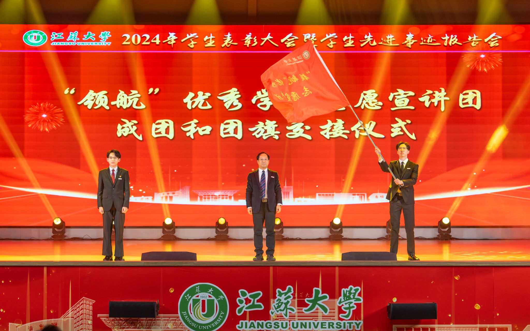 活动上举行了第二届多宝网页版“领航”优秀学子志愿宣讲团成团和团旗交接仪式,20名优秀学子成为宣讲团成员。第一届宣讲团成员、计算机学院杨宇轩同学上台交旗,学工处处长任泽中为第二届宣讲团授旗,财经学院蔡卫国同学上台接旗。