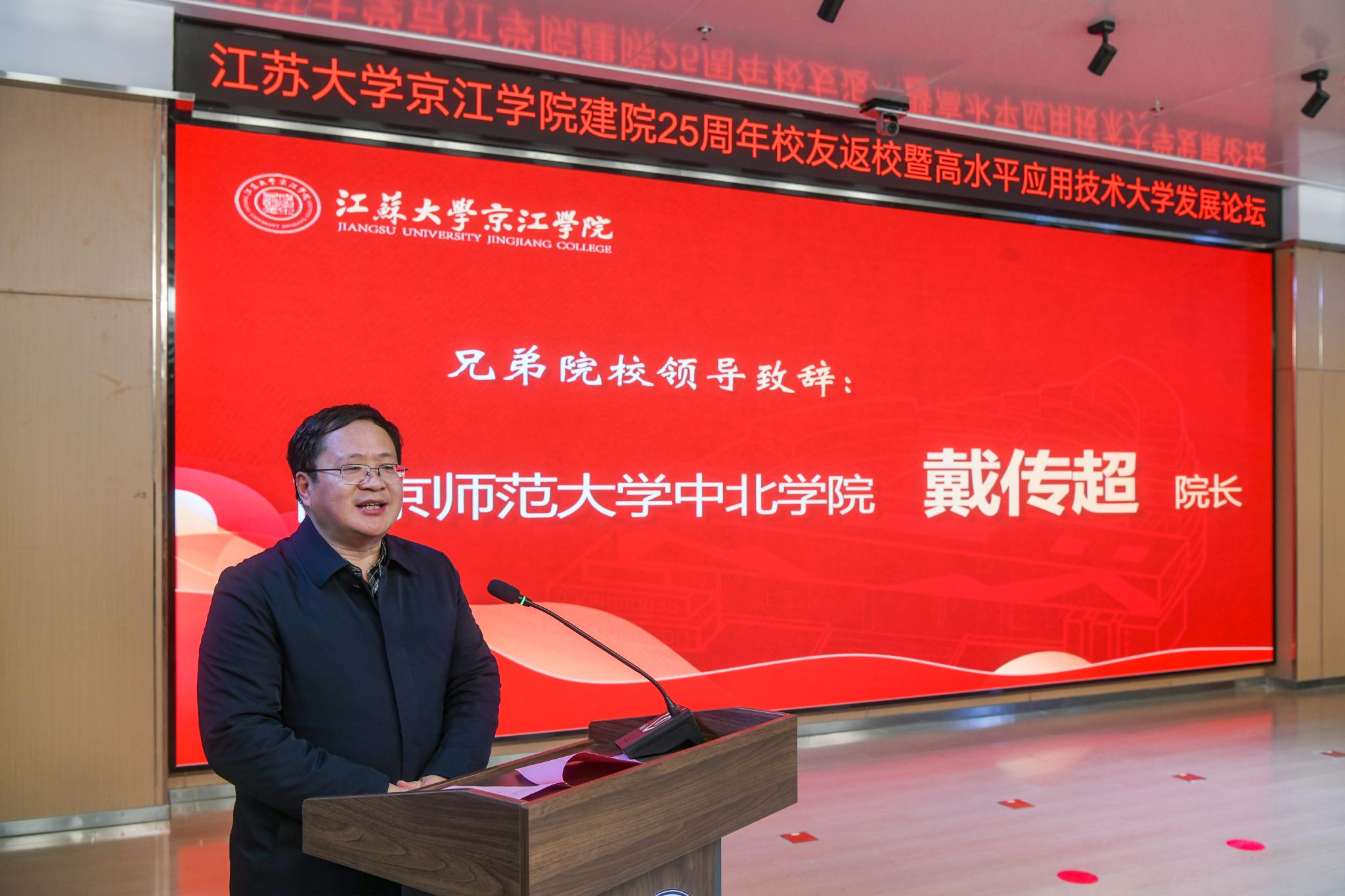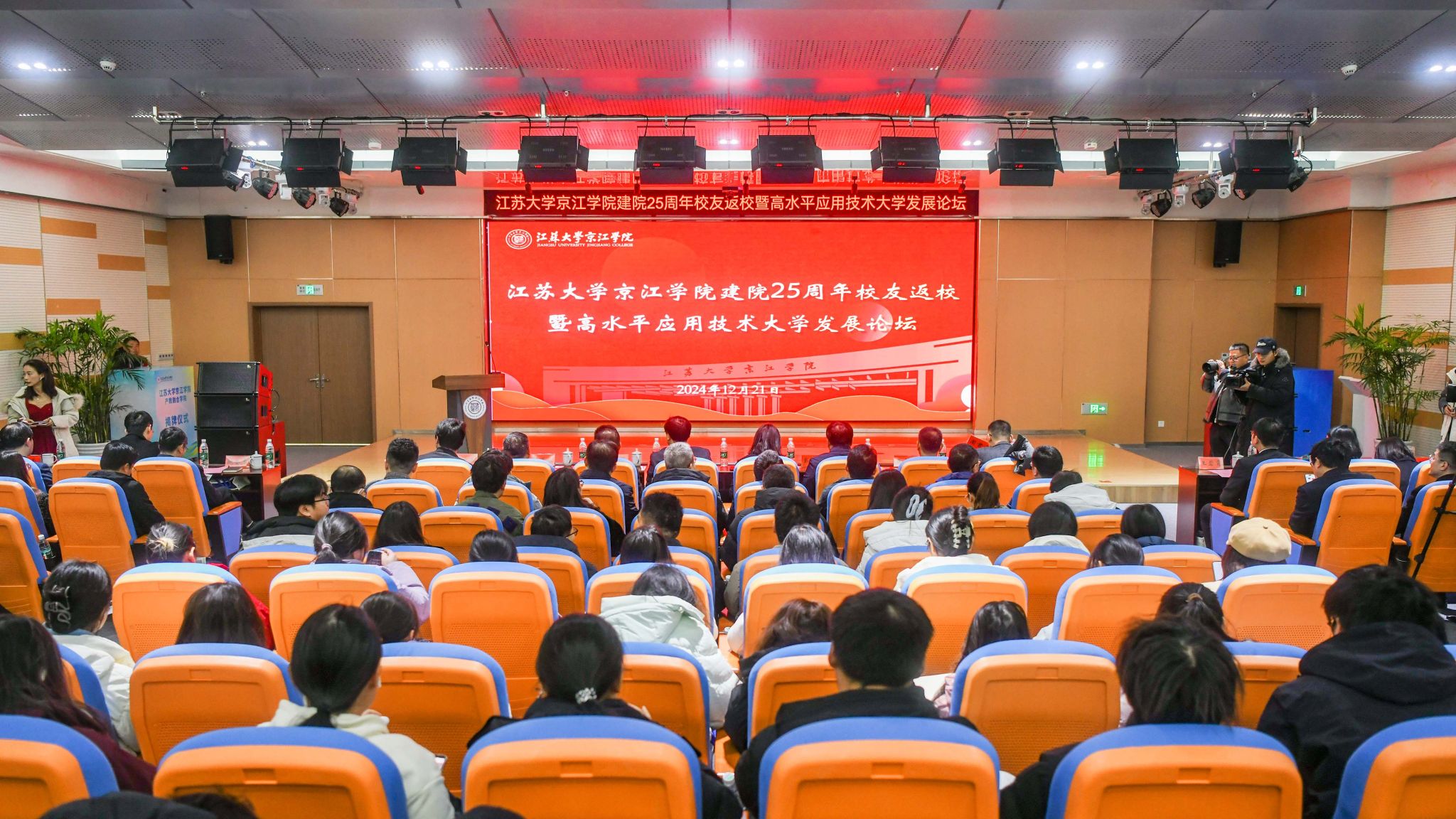 12月21日,京江学院在学术交流中心报告厅举行建院25周年校友返校暨高水平应用技术大学发展论坛。镇江市政协副主席、多宝网页版副校长陈红,镇江市发展和改革委员会副主任朱华,南京师范大学中北学院院长戴传超,校友会与对外联络办公室主任李国昊,企业代表,京江学院全体院领导、校友代表、教师代表、学生代表出席大会。