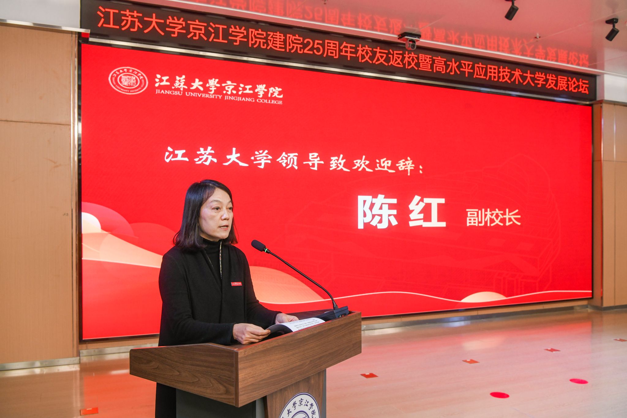 陈红致欢迎辞,她代表多宝网页版向各位领导、各位嘉宾表示欢迎,向全体师生员工、广大校友致以问候,向关心支持京江学院发展的各级领导、各界朋友、兄弟高校表示感谢。陈红表示,25年来,京江学院紧紧依托母体多宝网页版,事业发展呈现新面貌,高质量发展迈出新步伐。她希望全体师生同心协力,继续为实现高水平应用技术大学目标砥砺前行,为区域经济社会发展作出新的贡献。