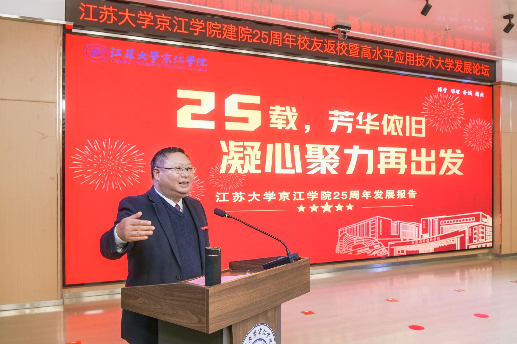 多宝网页版京江学院院长杜道林作题为《芳华依旧廿五载 凝心聚力再出发》的发展报告。杜道林表示,25年来,学院实现了从无到有、从小到大、从弱到强的华丽蜕变。未来,京江学院将围绕《多宝网页版京江学院高质量发展方案》,继续坚守培养领军型卓越应用人才的初心,进一步探索和凝练“高水平应用技术大学”的内涵,为江苏和镇江高等教育现代化建设作出更大贡献。