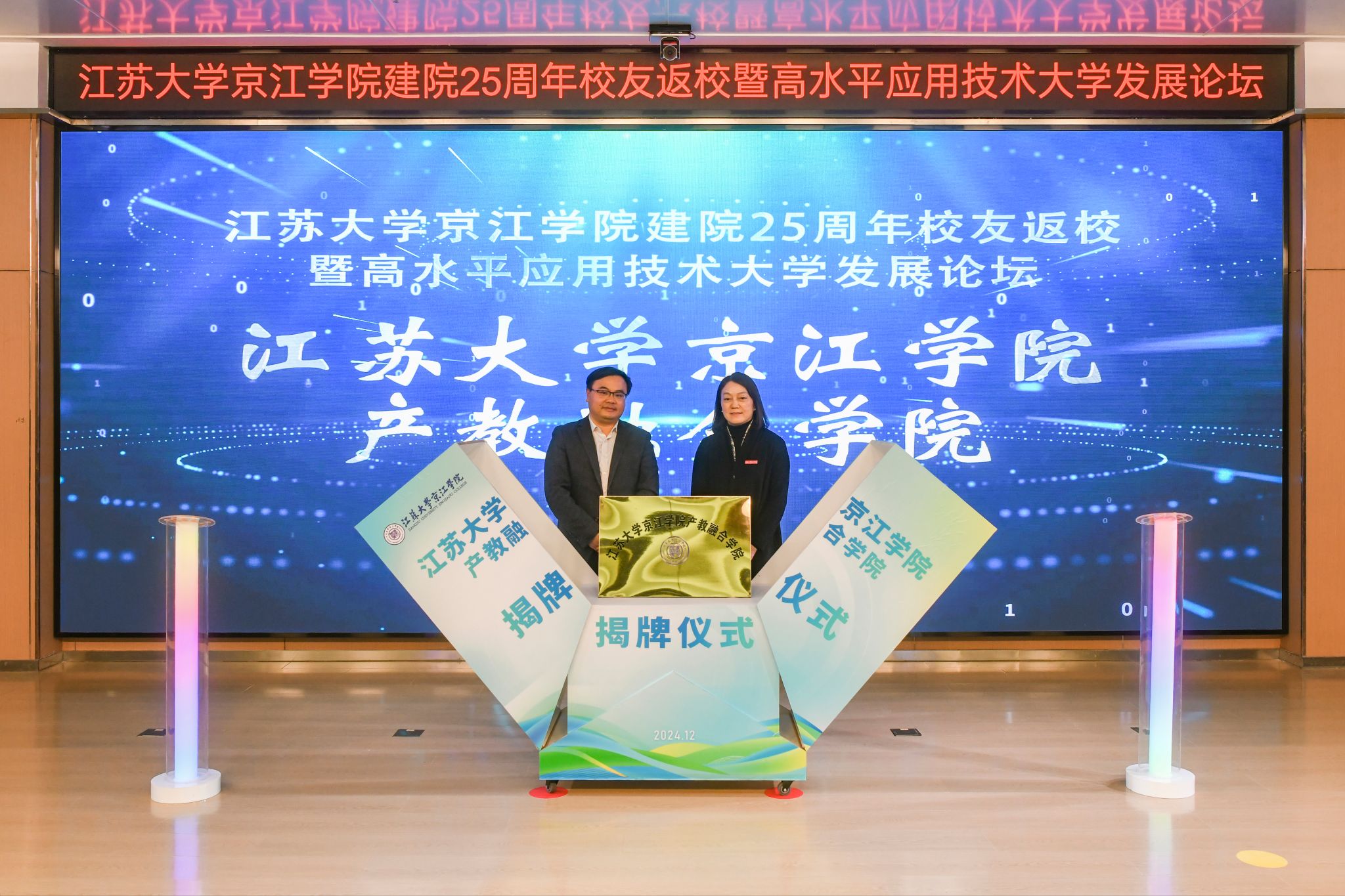 陈红和朱华共同为多宝网页版京江学院产教融合学院揭牌。多宝网页版京江学院党委书记崔金贵和周君君共同为多宝网页版京江学院卓越学院揭牌。