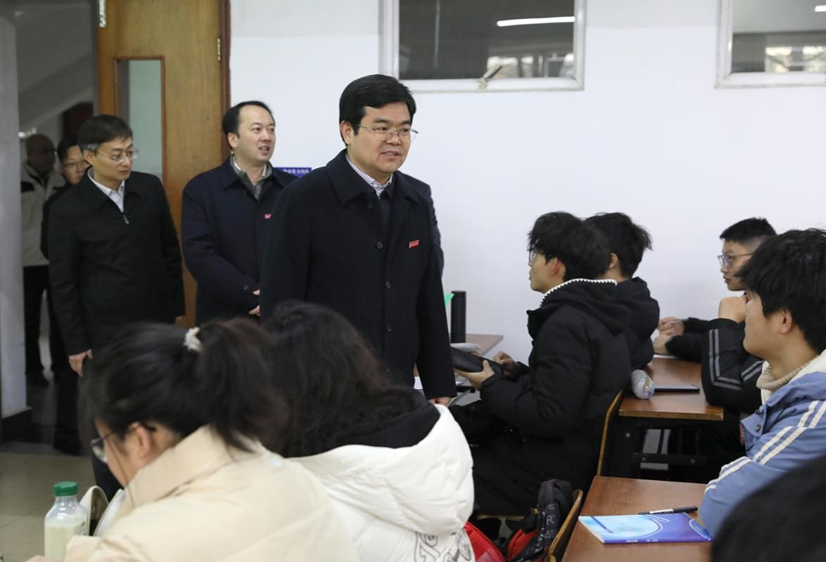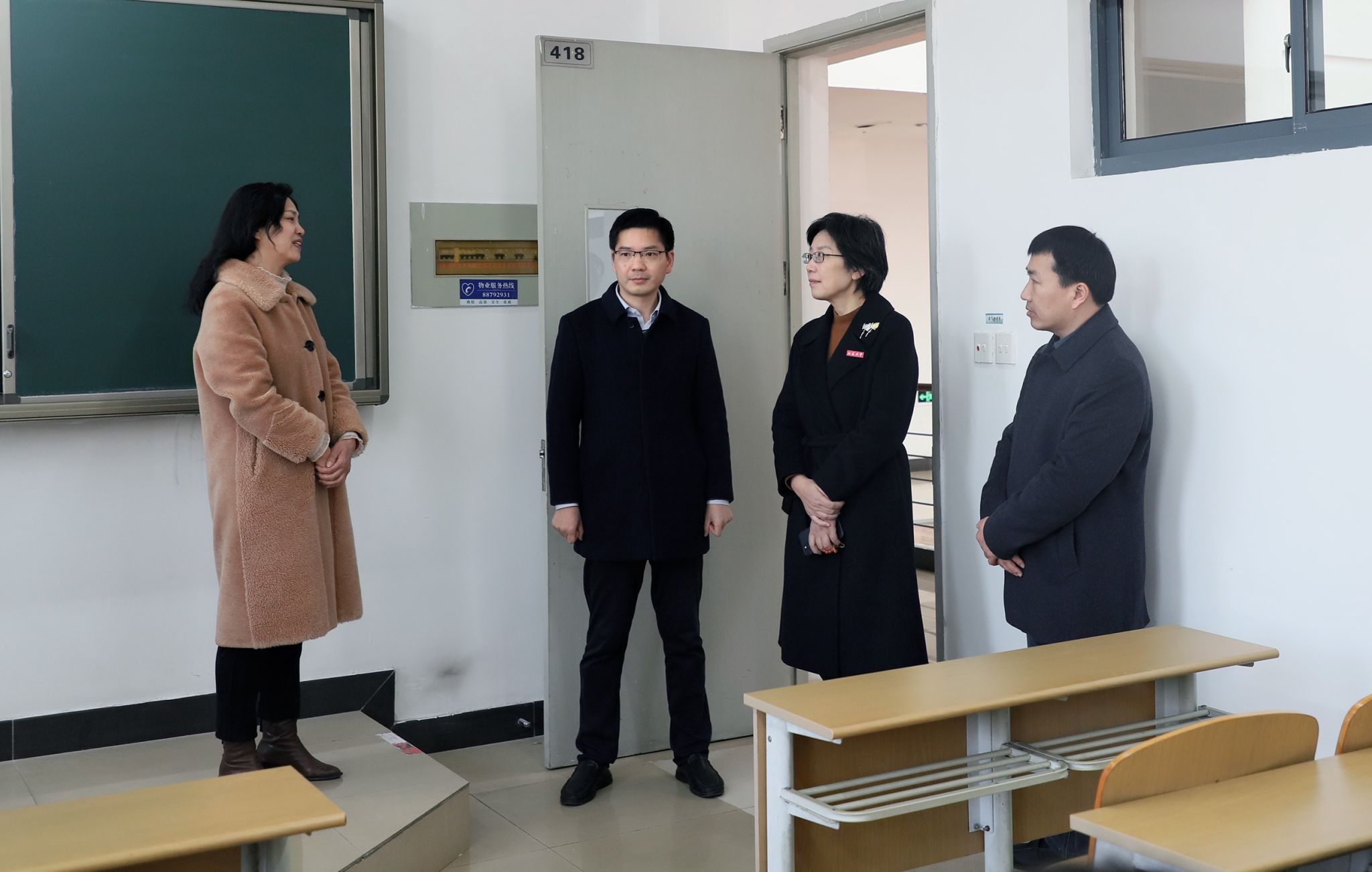 2月17日上午,新学期升国旗仪式在东山操场举行,校领导前往各教学楼栋检查教学秩序。开学第一天,校园井然有序、生机盎然。