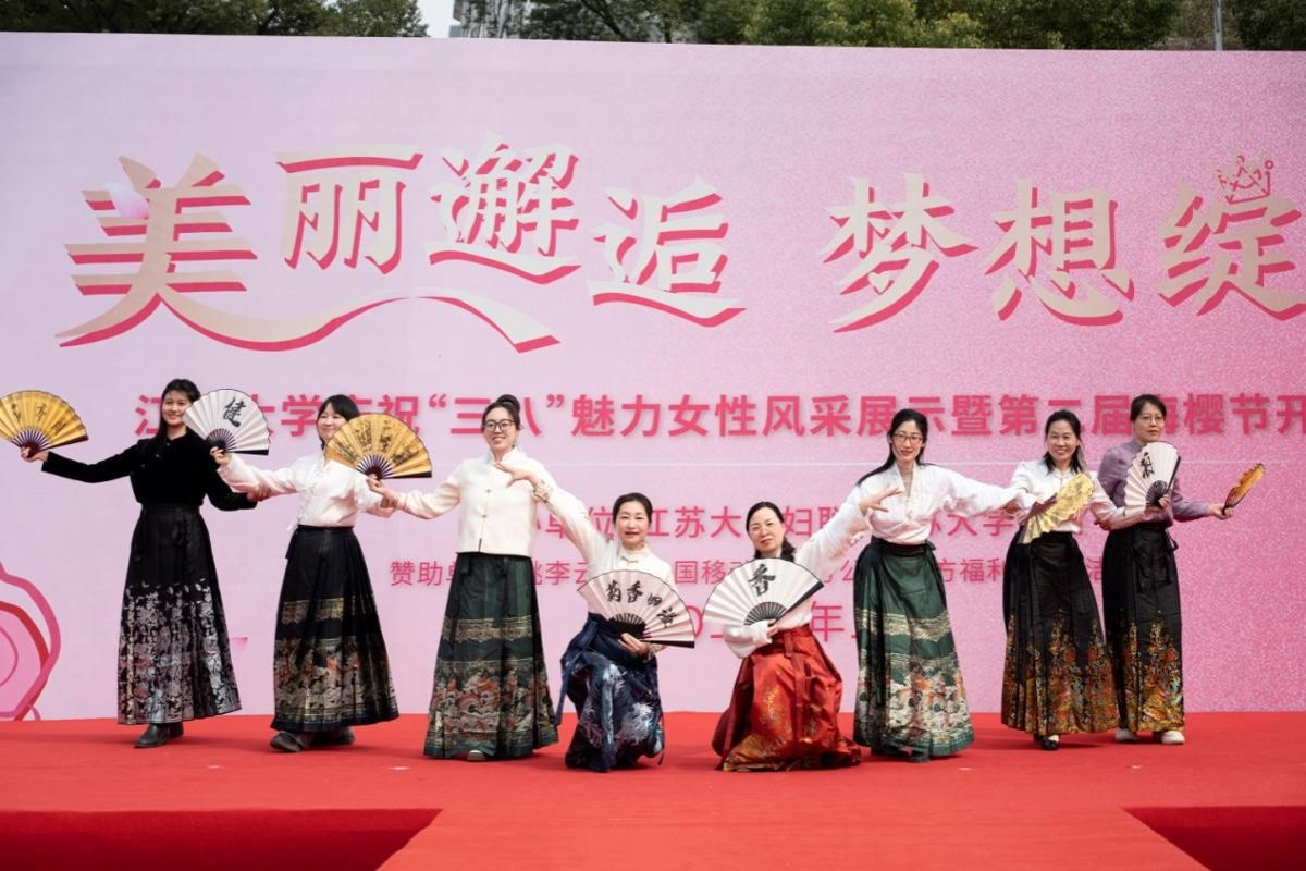 3月7日,多宝网页版“美丽邂逅 梦想绽放”——庆“三八”魅力女性风采展示暨第二届梅樱节开幕式在梅园大道举行。来自学校各单位的女教工和女大学生组成33支队伍以“T台红毯秀”的形式,展示风采庆祝节日,也为全校女同胞献上美好祝福。