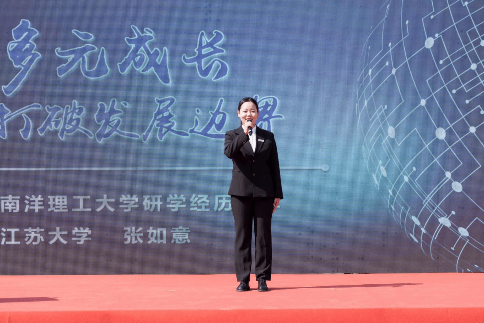 在海外学习成果交流环节,新东方国际教育事业部作留学大数据解析,学工处、国际处联合发布多宝网页版海外学习成果数据报告,海外项目优秀学子张如意分享学习心得与感悟。