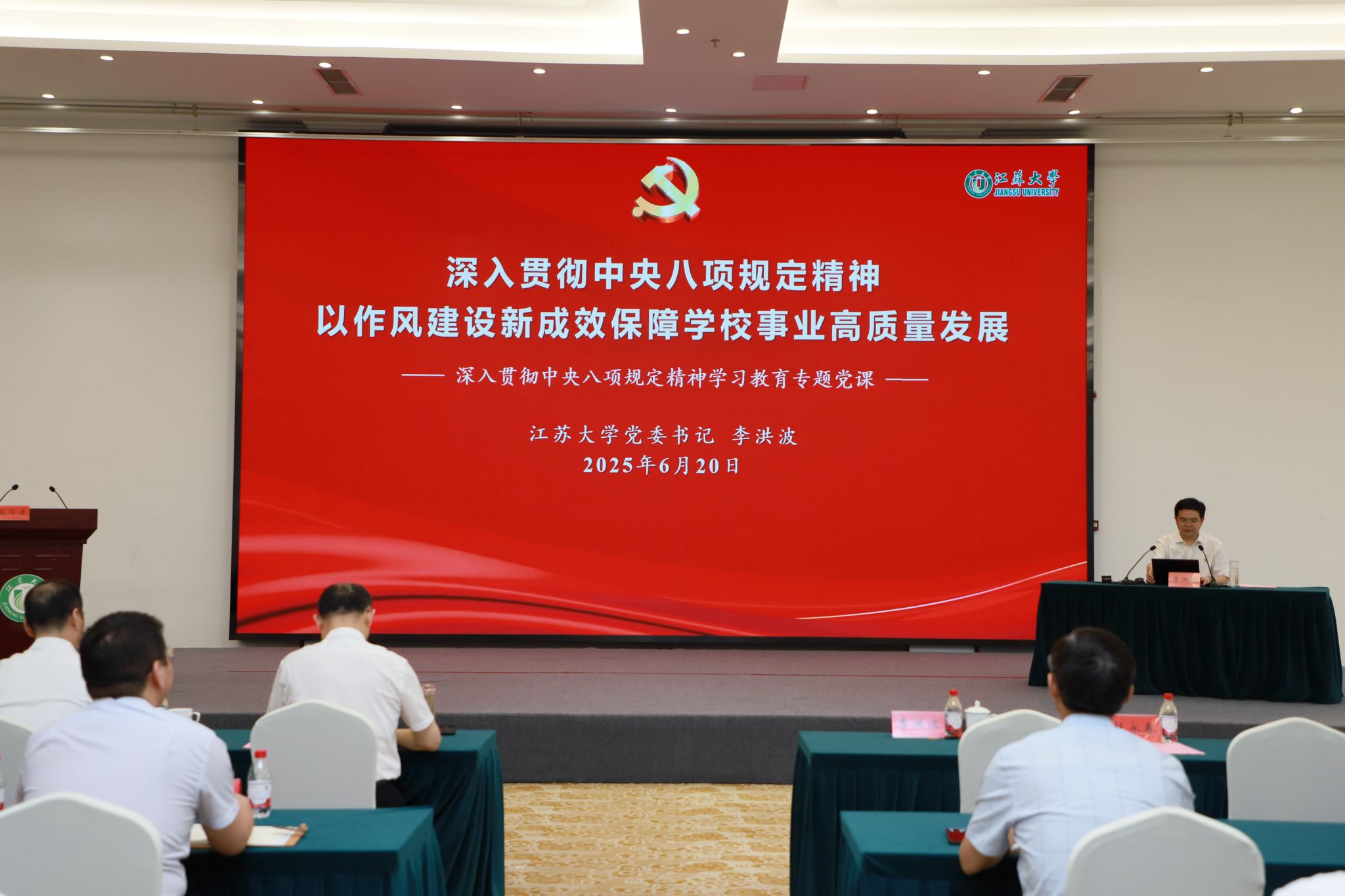 6月20日,校党委书记李洪波讲授《深入贯彻中央八项规定精神 以作风建设新成效保障学校事业高质量发展》专题党课,推动深入贯彻中央八项规定精神学习教育走深走实走心、落实落细落地。专题党课由校党委副书记张济建主持。