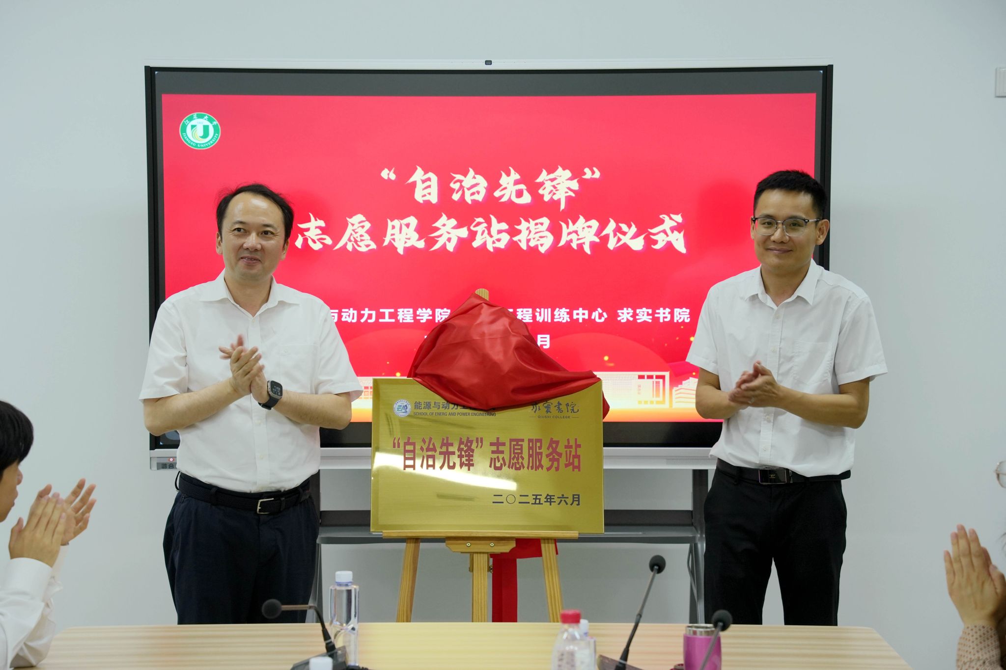 6月20日,全国劳动模范、杰出校友姚学良重返母校与师生交流,校党委常委、副校长任旭东与姚学良共同为“自治先锋”志愿服务站揭牌。