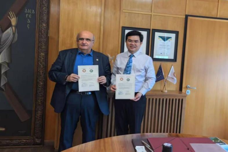 6月23日,代表团首站访问希腊帕特雷大学(University of Patras),与校长克里斯托斯•布拉斯(Christos Bouras)、学术与国际事务副校长迪奥尼修斯•曼察维诺斯(Dionissios Mantzavinos)举行会谈。双方正式签署合作意向书,致力于创建“一带一路”智慧农业技术与装备国际联合实验室,同步启动学生互换交流与境外办学项目,标志着中希高校合作迈入深度融合新阶段。当日,代表团还拜访了历史悠久的希腊雅典科学院,美国国家工程院院士、希腊科学院院士、希腊雅典国立技术大学化学工程教授Doros Nicolas Theodorou等热情接待。双方就开拓科技合作渠道、促进多宝网页版与希腊雅典科学院开展技术交流、高层次人才引进与输出达成共识。