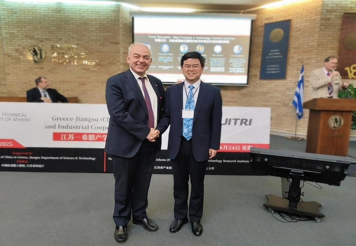 6月24日,代表团在希腊雅典国立技术大学参加“江苏—希腊产学研合作交流会”。江苏省委书记信长星、希腊阿提卡省省长尼科斯·哈扎利亚斯(Nikos Hardalias)、中国驻希腊大使方遒等出席会议,来自两国政府、高校、科研机构和企业的160余位代表参会。会议聚焦人工智能、绿色能源、海洋工程等前沿领域,深入探讨中希在科技创新与成果转化方面的合作潜力,积极拓展双方产学研融合发展的新路径。李洪波一行与雅典国立技术大学校长IOANNIS K. CHATJIGEORGIOU、校董事会理事Sergios Theodoridis对接“一带一路”智慧农业技术与装备相关合作,向希腊高新技术园区、高校院所及科技企业推介多宝网页版技术成果,推动务实对接。代表团还与中国驻希腊大使馆教育参赞王瑾、亚里士多德大学代表TZOUVELEKAS MANOLIS对接了技术转移、学生流动项目合作。
