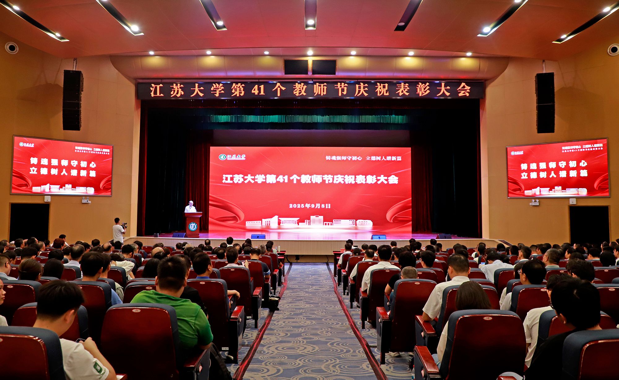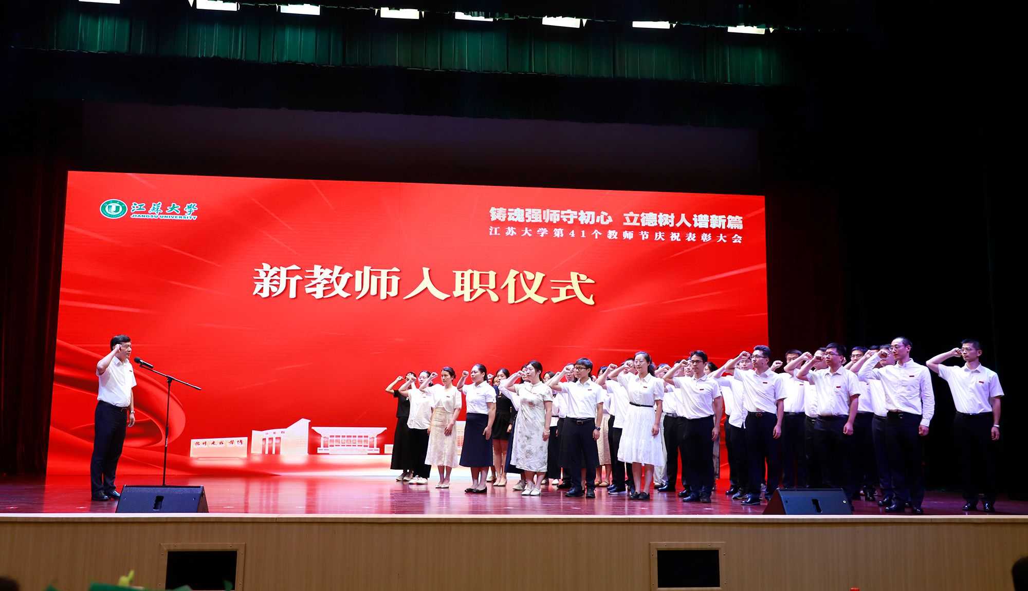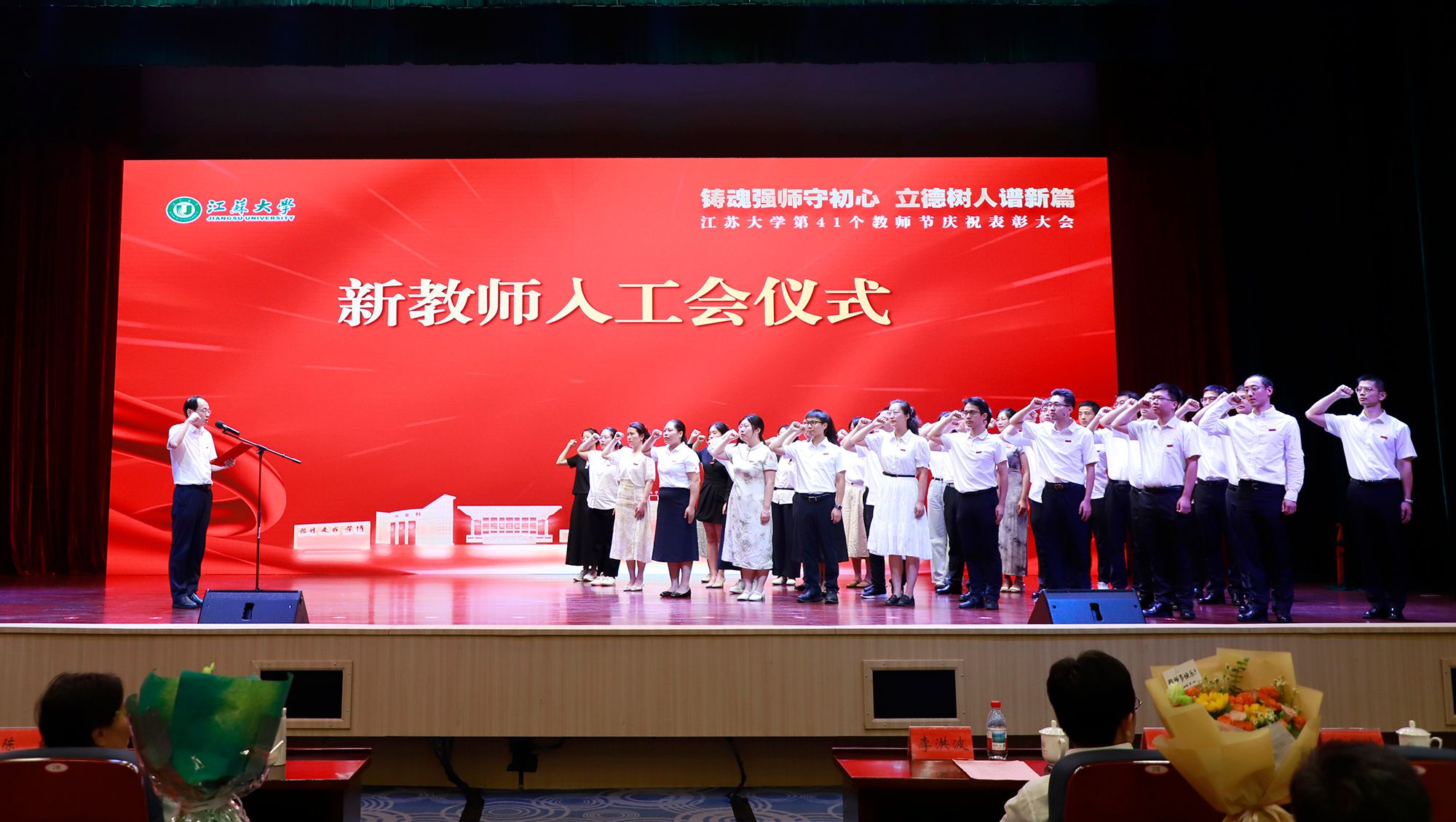 邢卫红致辞,代表学校向光荣退休的教职工表示衷心感谢并致以崇高敬意,向新入职的教职工表示热烈欢迎,向受到表彰的优秀教师表示热烈祝贺,并向全校教师致以节日的问候。邢卫红说,强国必先强教,强教必先强师,一流的师资队伍是学校高质量发展的基石。学校始终将人才作为发展的第一资源,深入实施“人才强校”战略,全面推进人才荟萃竞秀行动,加快打造高水平人才集聚高地。她表示,在广大教师的辛勤付出下,学校事业高质量发展取得了新成效,学校发展更有温度、更有高度、更有希望。邢卫红指出,高校教师要想站稳讲台、引领前沿,担起传播思想、传播真理、塑造灵魂的时代重任,需要不断提升自我、强大自我。她与大家交流了三点意见:一是用“春风化雨”的德行引领学生成长;二是用“授人以渔”的智慧推动教学相长;三是用“顶天立地”的学术成果彰显价值担当。邢卫红表示,学校愿做老师们最坚实的后盾,努力搭建发展平台、优化管理服务,进一步营造尊重教师的浓厚氛围,让老师们安心从教、舒心工作、静心育人。