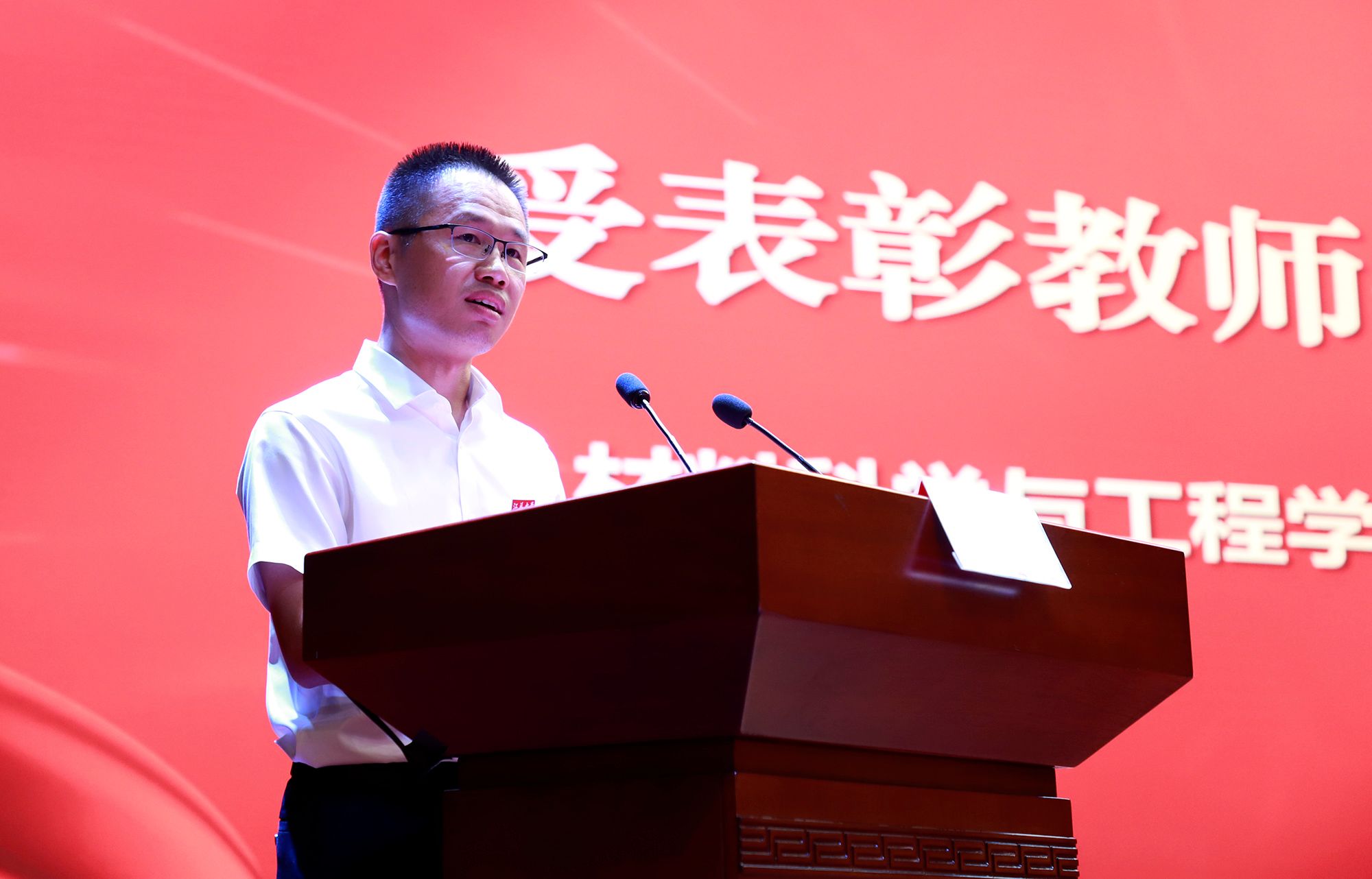 受表彰教师代表、第五届全国高校教师教学创新大赛一等奖获得者、材料科学与工程学院教师罗锐发言。