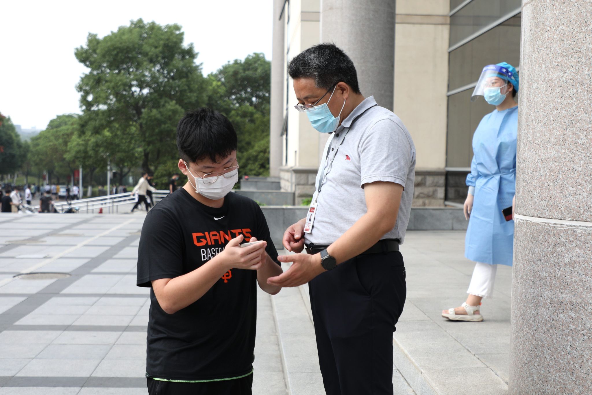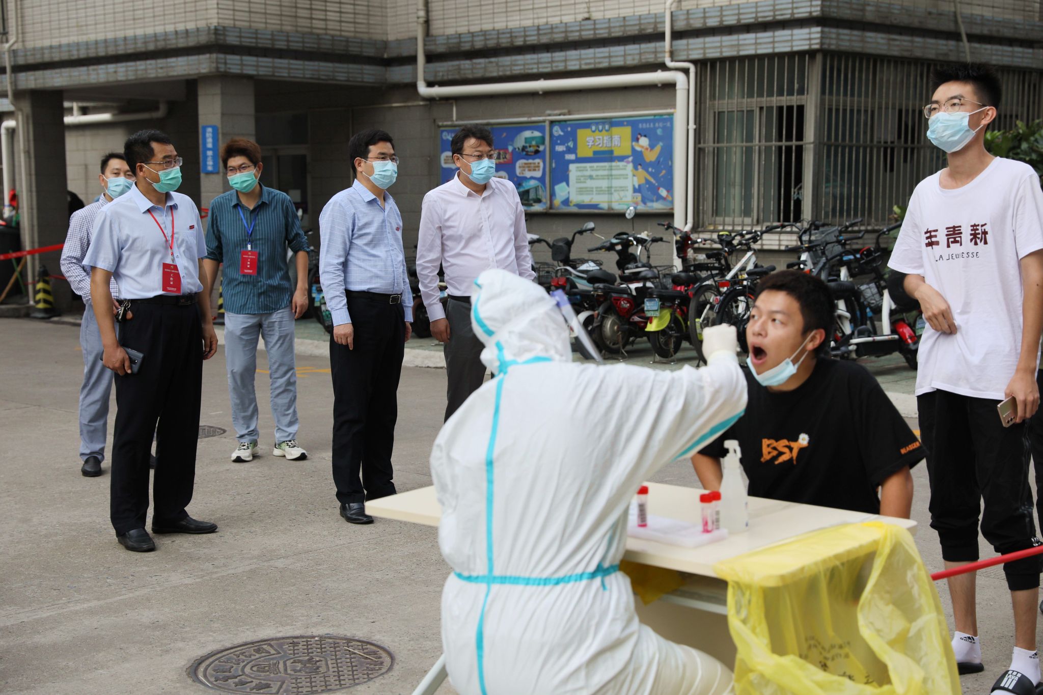 校领导采取“四不两直”的方式,督导检查全员核酸检测工作。