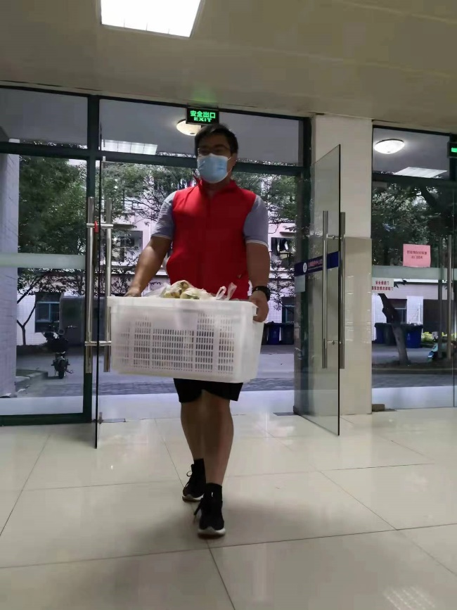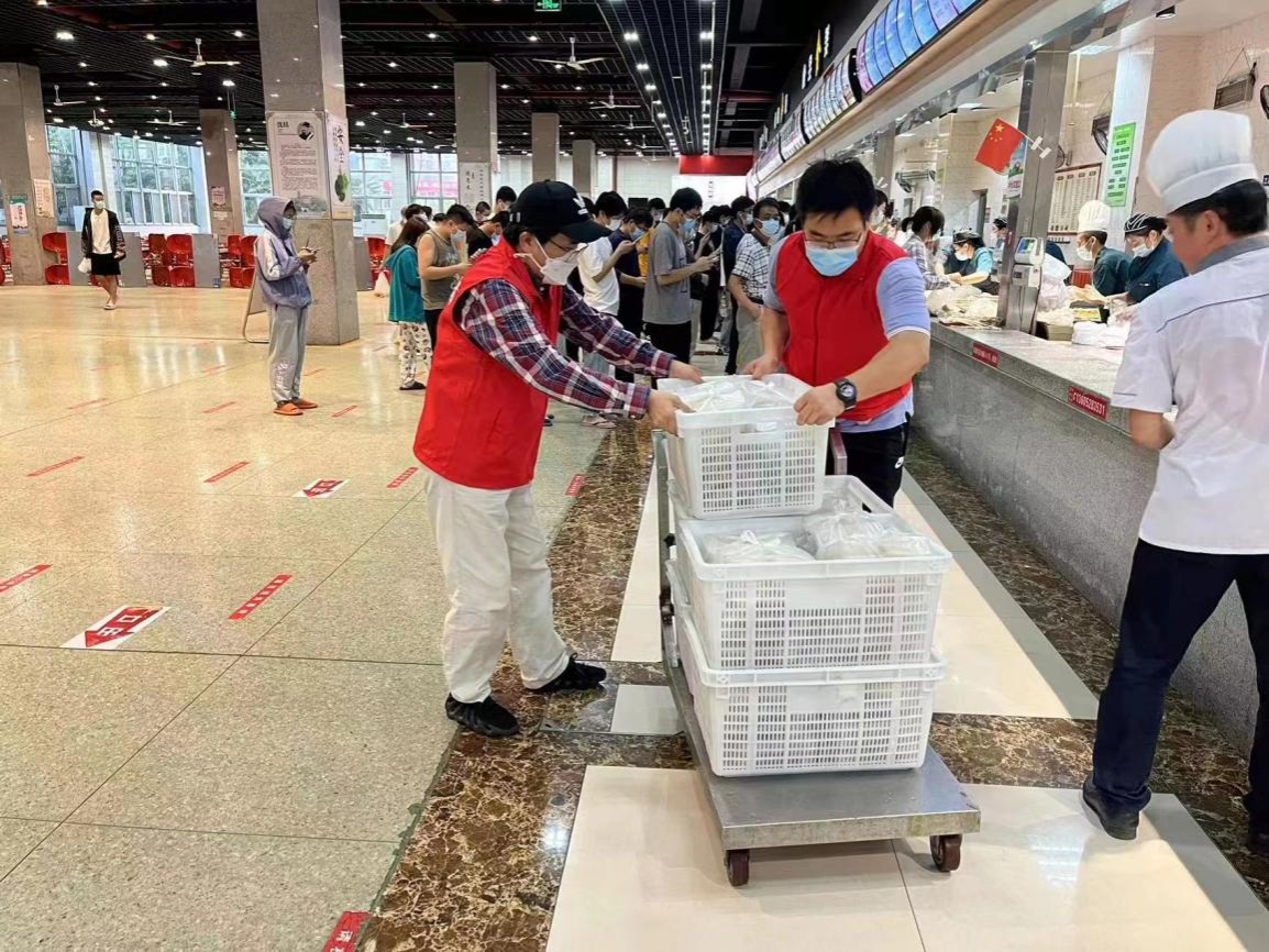 9月28日早上,胡志超、唐晓红两名老师迅速响应学校征集志愿者的号召,收拾好行囊赶到学校。当学院招募2名送餐志愿者时,刘玉成、梁振伟两位2秒之内就完成了报名。每次送餐都忙得大汗淋漓,梁振伟也开着玩笑说,“每天要完成一百多套的送餐任务,没有点肌肉还真不行!”