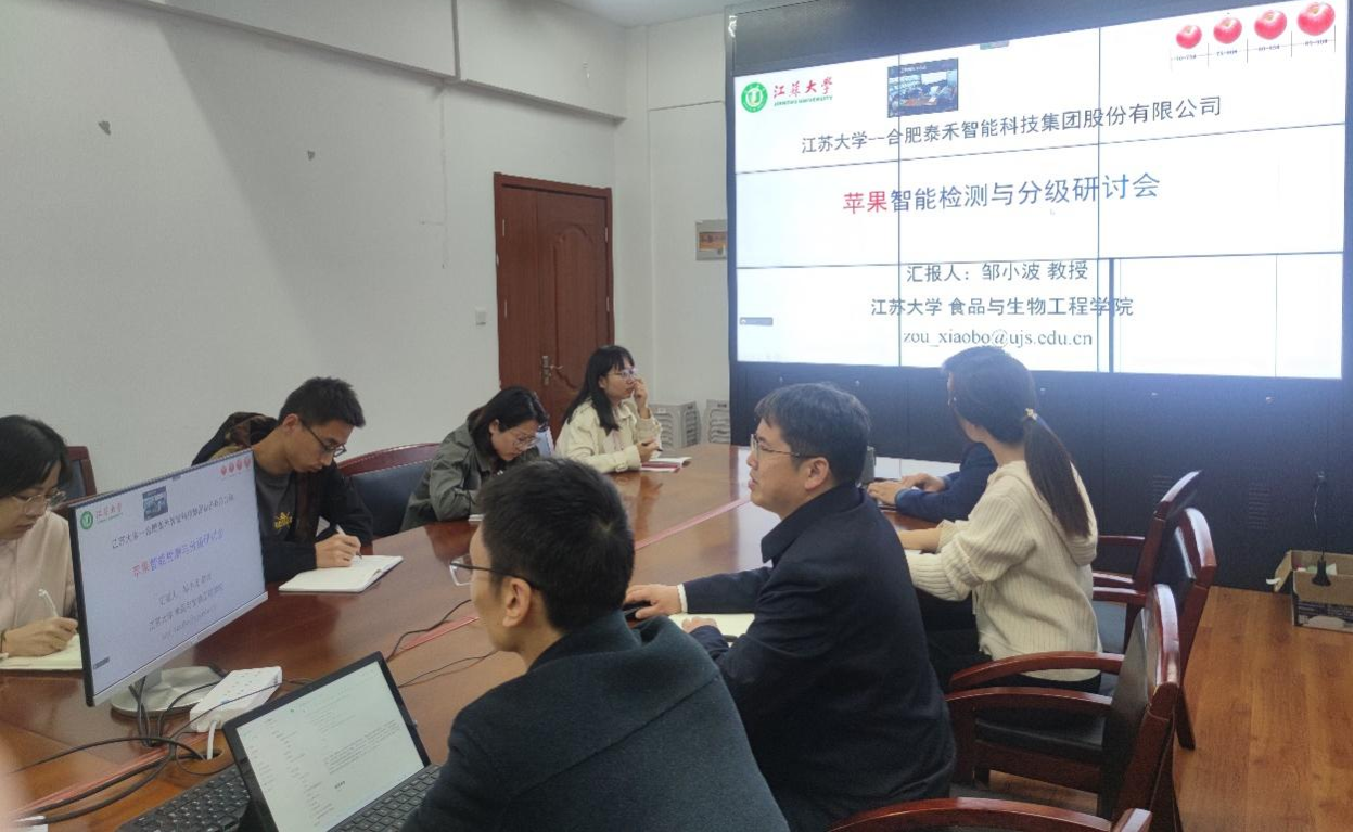 泰禾副总经理曾燕、果蔬事业部总经理姚树良、何金波副总经理(在陕北现场)等研发人员以及食品无损检测团队相关老师参加了会议。研讨会由国家苹果产业技术体系岗位专家、食生学院院长邹小波教授主持。