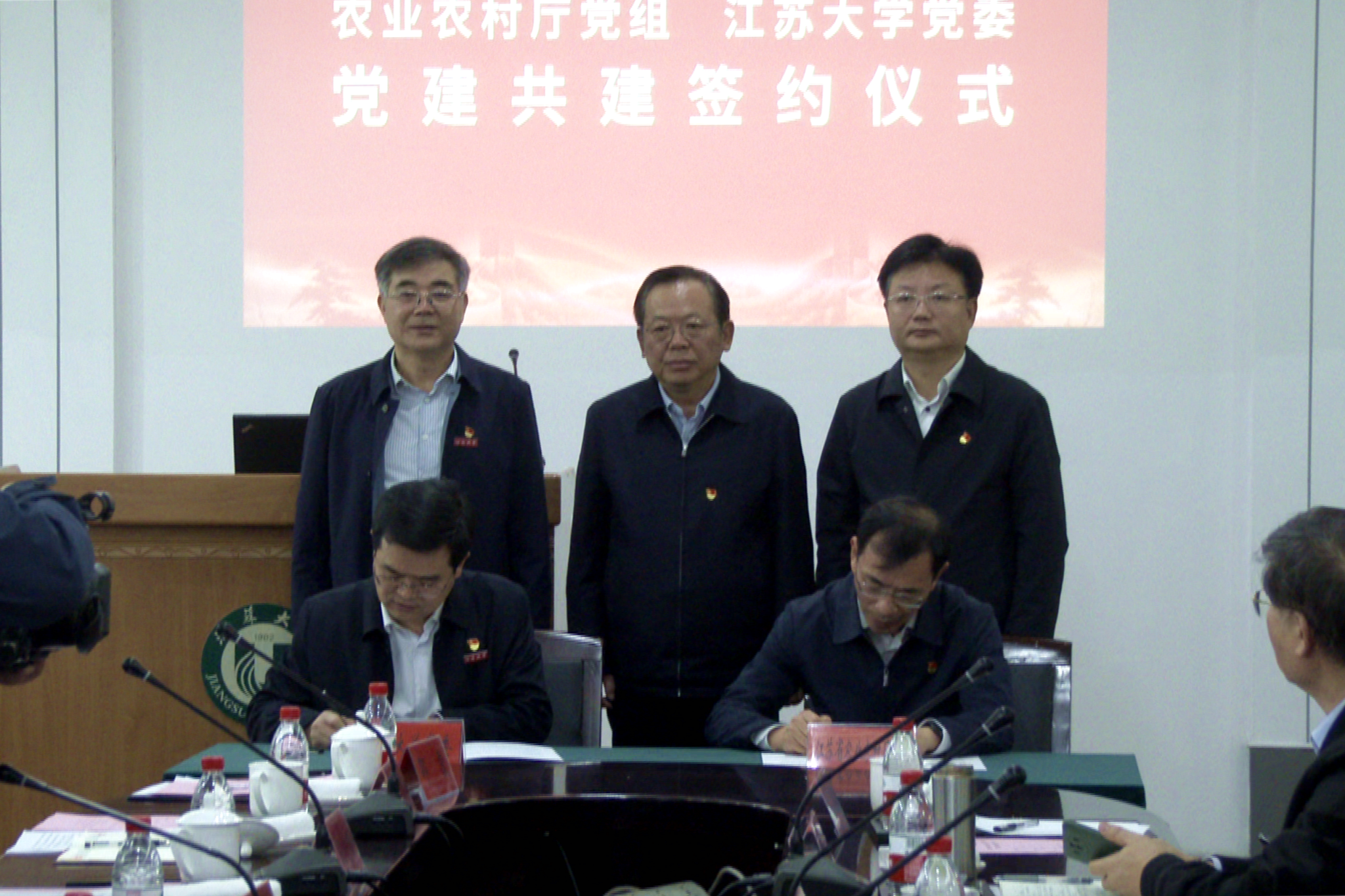 省委农办主任、省农业农村厅厅长、党组书记杨时云,镇江市人民政府副市长徐申锋,校党委书记袁寿其等领导出席仪式。省农业农村厅副厅长朱新华、校党委副书记李洪波代表共建双方现场签约。校党委常委、副校长全力,江苏农林职业技术学院党委书记简祖平等共同为江苏省智能农机装备产业校企党建联盟揭牌。签约揭牌仪式由校党委副书记、校长颜晓红主持。