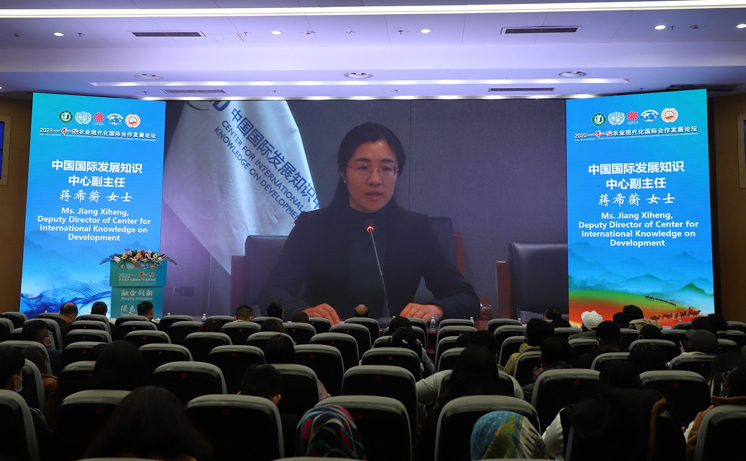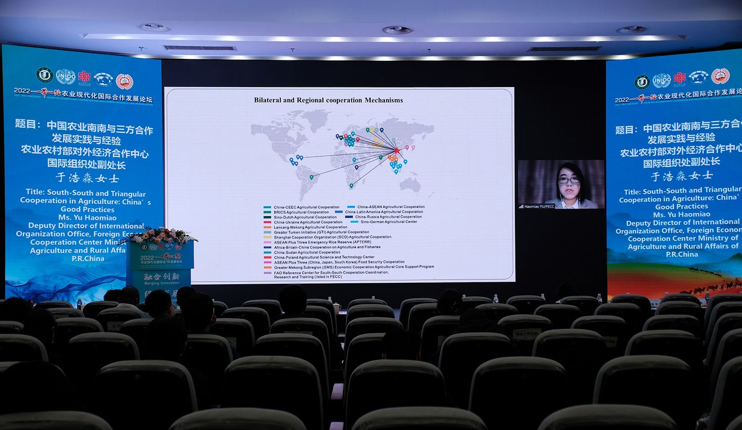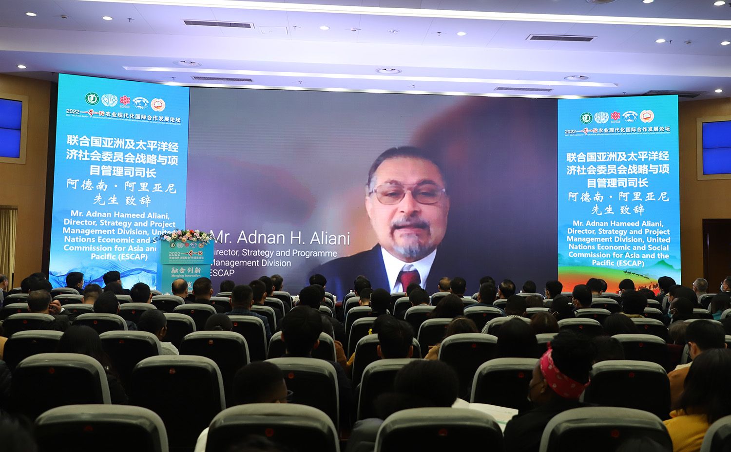 中国农业国际合作促进会会长许国成、中国农业机械工业协会执行副会长赵剡水、中国国际发展知识中心副主任蒋希蘅、中国教育国际交流协会副秘书长安延、中国农业机械化协会副秘书长夏明、中国农业科学院海外中心副主任聂凤英、农业农村部对外经济合作中心国际组织处副处长于浩淼、中国商业股份制企业经济联合会国际文化教育交流促进工作委员会主任邹海、中国国际科技促进会常务理事邢纪国;以及联合国粮农组织驻华代表文康农,联合国粮农组织植物生产与保护司司长夏敬源,联合国工业发展组织农业司司长德耶内·泰泽拉,联合国亚洲及太平洋经济社会委员会战略与项目管理司司长阿德南·阿里亚尼,联合国可持续农业机械化中心副主任安书曼,世界粮食计划署中国办公室南南合作主管贾焰,巴基斯坦国家农业研究委员会主席古兰·穆罕穆德·阿里尼,波黑塞族共和国农林水利部部长鲍里斯·帕沙里奇,莫桑比克教育部前部长、莫桑比克师范大学校长豪尔赫·费劳,尼泊尔跨喜马拉雅友好协会主席拉吉姆·库玛·贾哈,加纳苏尼亚尼能源与自然资源大学校长埃尔维斯·阿萨雷·比迪亚高,波黑塞族共和国巴尼亚卢卡大学副校长米罗斯拉夫·马利诺维奇等国内国际嘉宾线上出席论坛。
