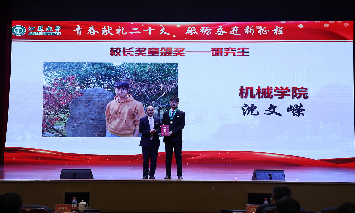 出席大会的领导为受表彰的先进集体和个人颁奖。校党委书记袁寿其为获得第八届中国国际“互联网+”大学生创新创业大赛国赛金奖、银奖团队代表和2022年全国大中专学生志愿者暑期“三下乡”社会实践活动优秀单位颁奖;颜晓红为2021-2022学年“博学”“求是”“明德”校长奖章获得者颁奖;校党委副书记李洪波为2022年度省级三好学生颁奖;校党委常委、纪委书记、派驻监察专员高庆国为2022年度省级优秀学生干部、省级先进班集体颁奖;副校长全力为2021-2022学年校三好标兵、校优秀研究生标兵颁奖;副校长赵玉涛为2022年度校大学生优秀共产党员代表颁奖;副校长李红为2022年度校大学生先进党支部颁奖;校党委常委、组织部部长马志强为2022年校社会实践活动先进单位颁奖;校党委常委、统战部部长杨敬江为2022年校社会实践活动十佳团队颁奖;校党委常委、宣传部部长杨道建为2022年校社会实践活动十佳个人颁奖。