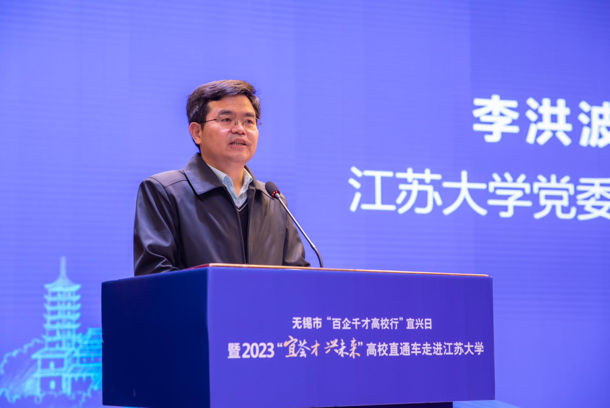 李洪波在致辞中向参加活动的宜兴市政府部门和企业代表介绍了学校事业发展情况,表示学校将以此次活动为契机,积极发挥在人才、科技、创新等方面的资源优势,打造集人才培养、科学研究、社会服务为一体的全方位、全天候的交流合作平台,不断拓展学校与宜兴市合作空间,为校政企全面合作按下“快进键”、搭建“直通车”、驶入“快车道”,跑出聚力攻坚促就业的“加速度”。