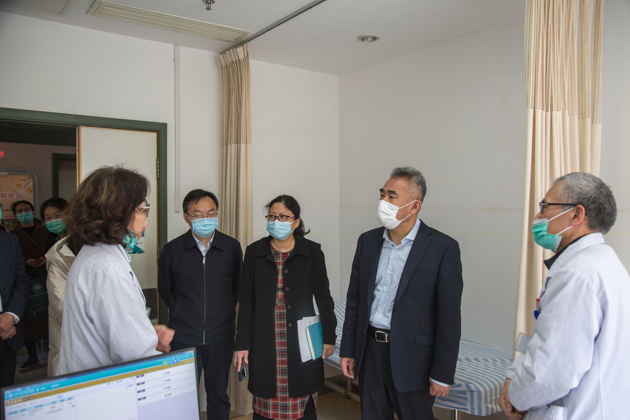 王海东一行实地考察了附属医院门诊助老服务站、老年医学科门诊和老年评估室、老年医学科病房,详细调研了医院关于老年友善医疗机构建设、老年医学科学科发展及安宁疗护等方面的工作。