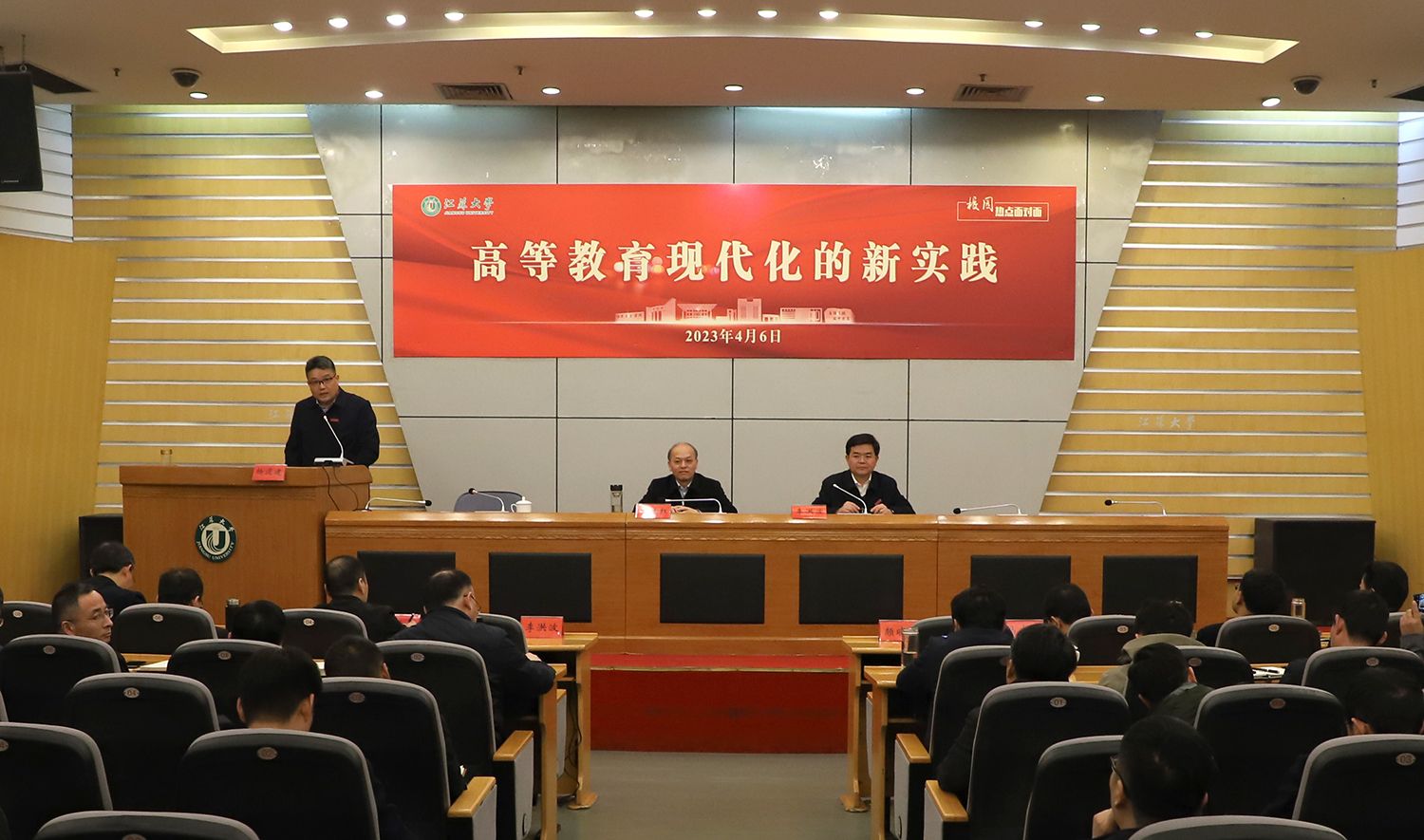 4月6日,校长颜晓红、校党委副书记李洪波走进校园热点面对面之“高等教育现代化的新实践”活动现场,与老师们面对面交流,围绕如何夯实大学的归依,探索行业特色地方高校的高等教育现代化特色发展之路,在中国科教体系中传递多宝网页版模式、多宝网页版方案进行现场释疑解惑。校党委常委、宣传部部长杨道建主持活动。