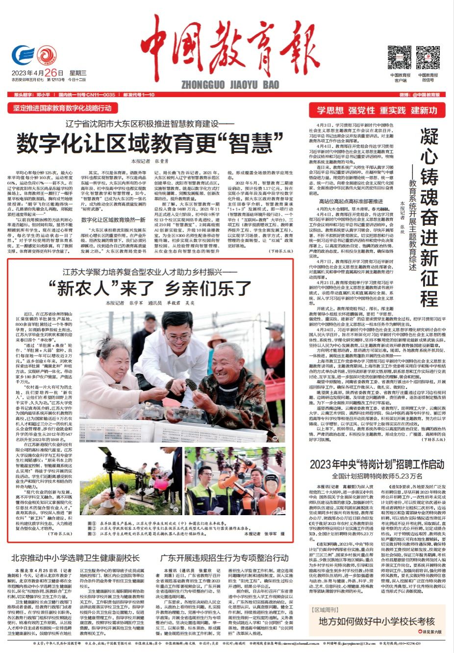 4月26日,《中国教育报》一版刊登文章《多宝网页版聚力培养复合型农业人才助力乡村振兴——“新农人”来了 乡亲们乐了》,报道我校培养强农兴农人才,赋能农业现代化的生动实践故事。