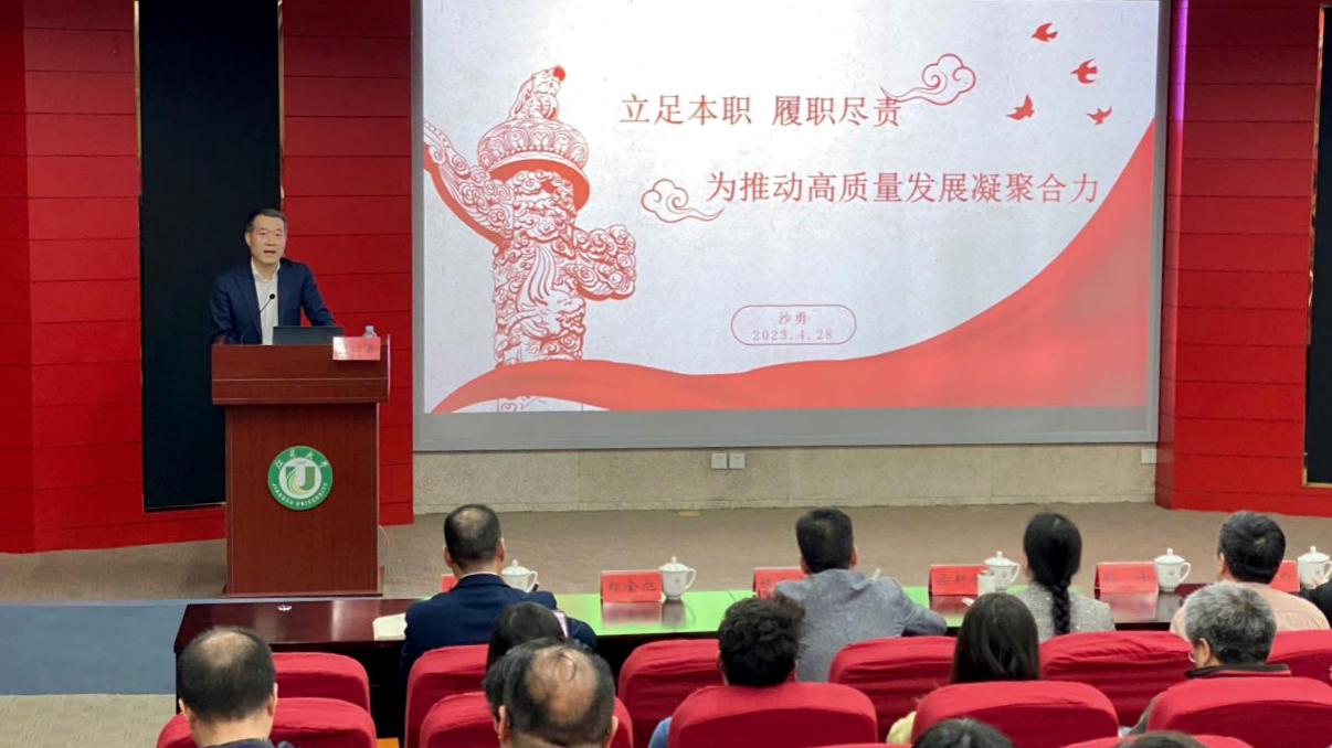4月28日,我校在图书馆报告厅举办以“立足本职 履职尽责 为推动高质量发展凝聚合力”为主题的统一战线专题报告会。