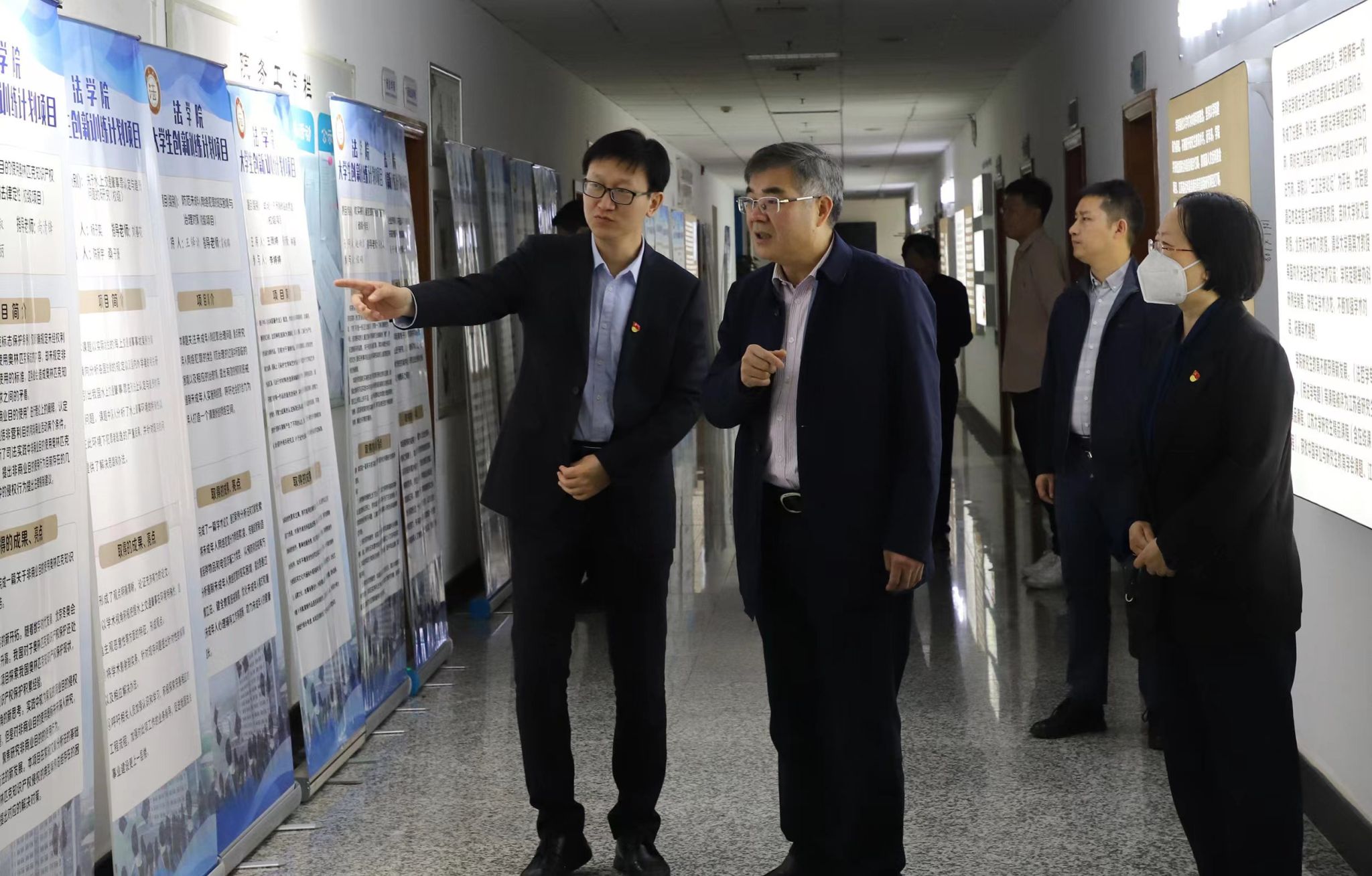 在法学院,袁寿其参观了全国党建工作样板支部——法学院教工第一党支部党建活动室,观看了法学院大学生创新训练计划项目成果展。袁寿其指出,法学院党委要切实加强党建与事业深度融合发展,以纪检监察学科和农村法治建设为突破口,总结凝练经验、打造特色品牌。