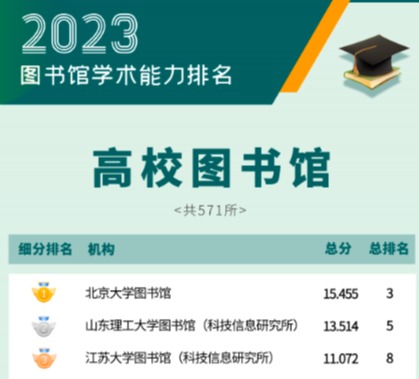 6月19日,图书馆学术评价课题组联合新文科专委会正式发布“2023图书馆学术能力排名”。本次共统计图书情报类机构782所,上榜机构为234所(前30%),多宝网页版图书馆表现优异,位列高校系统第三名。