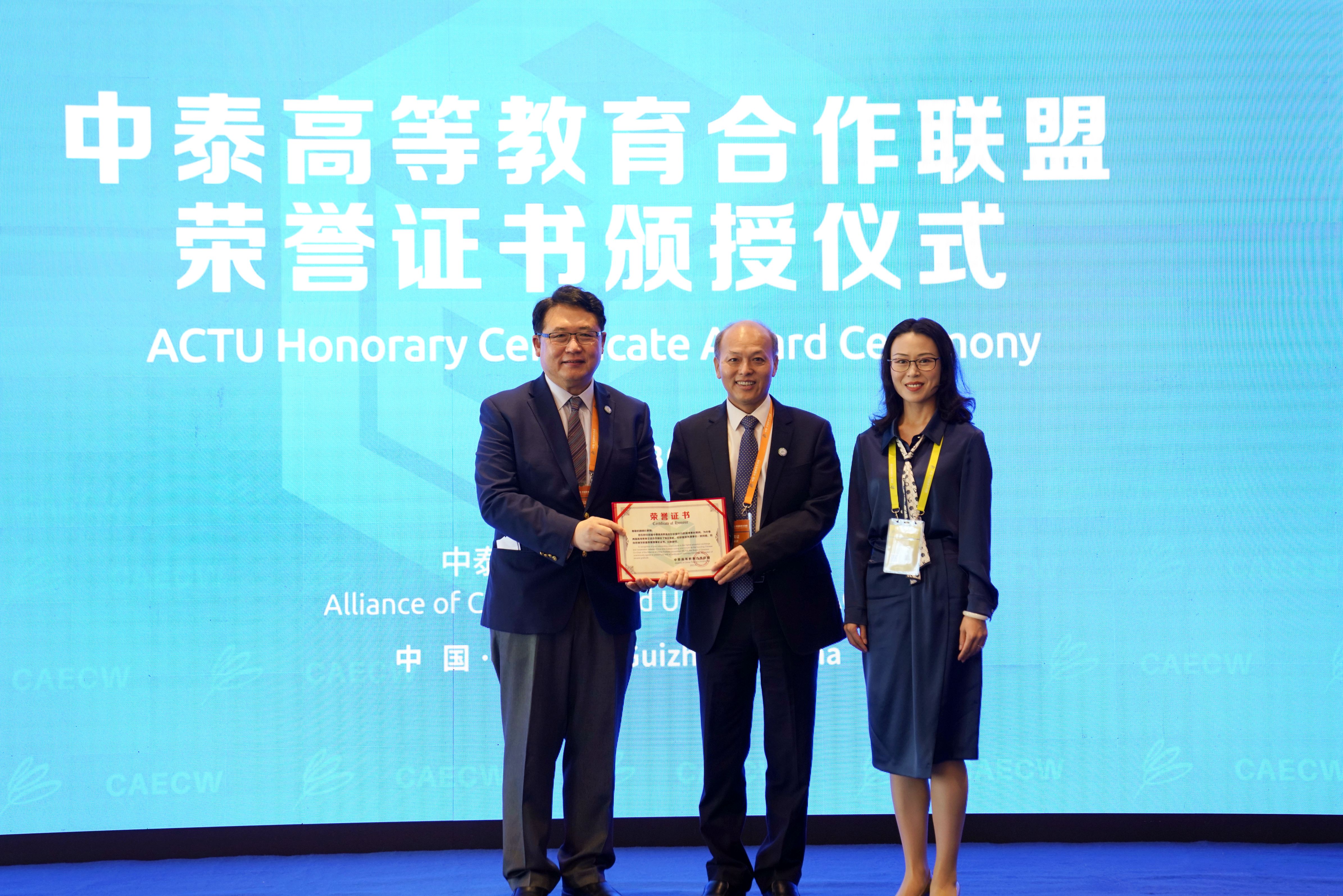 在中泰高等教育合作联盟首任中方联席理事长荣誉证书颁发仪式上,中泰高等教育合作联盟首届中方联席理事长颜晓红教授获颁联盟荣誉理事长证书。