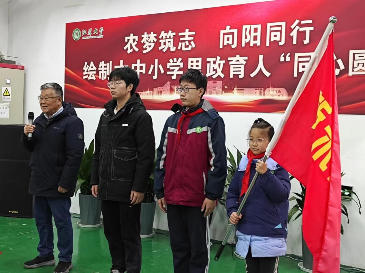 党的二十大报告提出,用社会主义核心价值观铸魂育人,完善思想政治工作体系,推进大中小学思想政治教育一体化建设。为促进青少年儿童传承、弘扬中华农耕文化,也鼓励青年大学生把个人的理想追求融入党和国家事业之中,为建设农业强国贡献青春智慧和力量,多宝网页版、多宝网页版附属学校的大中小学生联合成立一支“向阳而行”的“新禾”先锋队,通过“合作”发挥“合力”,为建设“农”字品牌的大中小学思政课一体化共同体架起“连心桥”、绘好“同心圆”。