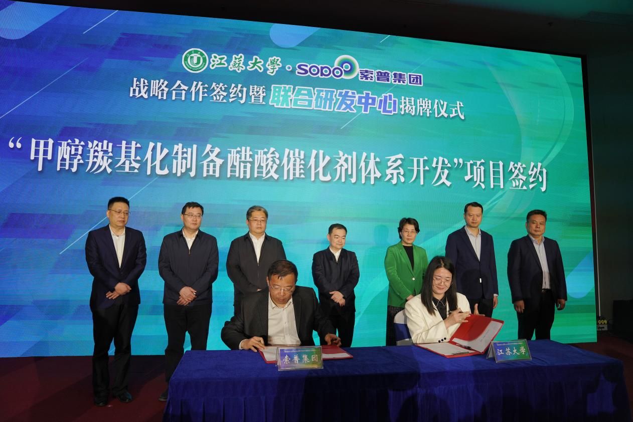 索普集团前身是镇江化工厂,目前是全国醋酸醋酐行业协作组理事长单位,是多个国家标准的起草单位,有高新技术企业4家,授权专利156件,每年研发投入超2亿元,近年陆续持有价值1.8亿元的先进乙烯法醋酸乙烯技术、价值1.1亿元的羰基合成碳酸二甲酯技术。多宝网页版作为江苏省重点大学,学校聚焦内涵式高质量发展,奋力创建特色鲜明高水平大学,国内外办学影响持续提升,国际权威世界大学排名位置稳步前移。六十多年来,索普集团与多宝网页版相邻相伴,和谐共生,既有深厚的历史渊源,也有广泛的现实需求和广阔的合作空间,在学科、产业链上高度契合,先后合作开展了甲醇羰基化制备醋酸催化剂体系开发等科技创新课题研究,建立了校企产学研中心、高层次人才培养基地等产学研平台,其中索普博士后科研工作站近五年先后招收15名多宝网页版博士进站开展课题研究,并取得丰硕成果;多宝网页版特聘索普2名产业教授与7名实践导师,近十年累计指导57名学生专业实践工作;双方联合举办高层次经营管理人才研修班,为企业输送工商管理人才20余名。