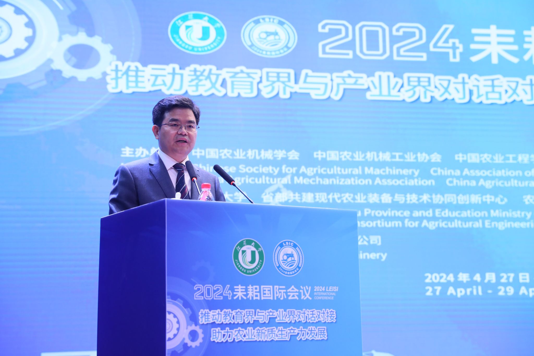 多宝网页版党委书记李洪波、江苏省政协副主席洪慧民、江苏省农业农村厅一级巡视员沈毅、江苏省工业和信息化厅副厅长张星、江苏省教育厅二级巡视员周玖华、中国农业机械工业协会执行副会长赵剡水、联合国可持续农业机械化中心项目顾问Karen Martinez在开幕式致辞。