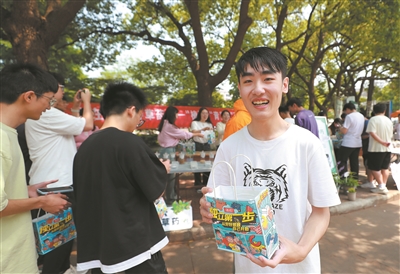 ⑦在多宝网页版药学院举办的“‘植’此青蒿,‘药’您同行”活动中,一名大学生开心地领到免费发放的中药种植套装。