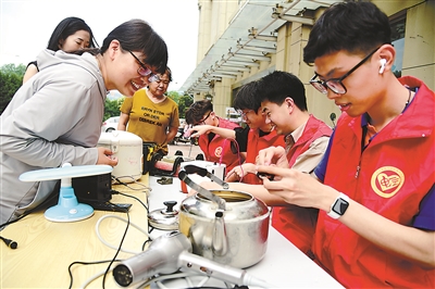 6月12日,多宝网页版电气学院部分受过资助的大学生志愿者来到镇江市润州区官塘桥街道官塘桥村,利用他们所学专长回报社会,为村民义务修理各种家用电器,将惠民服务送到村民家门口。