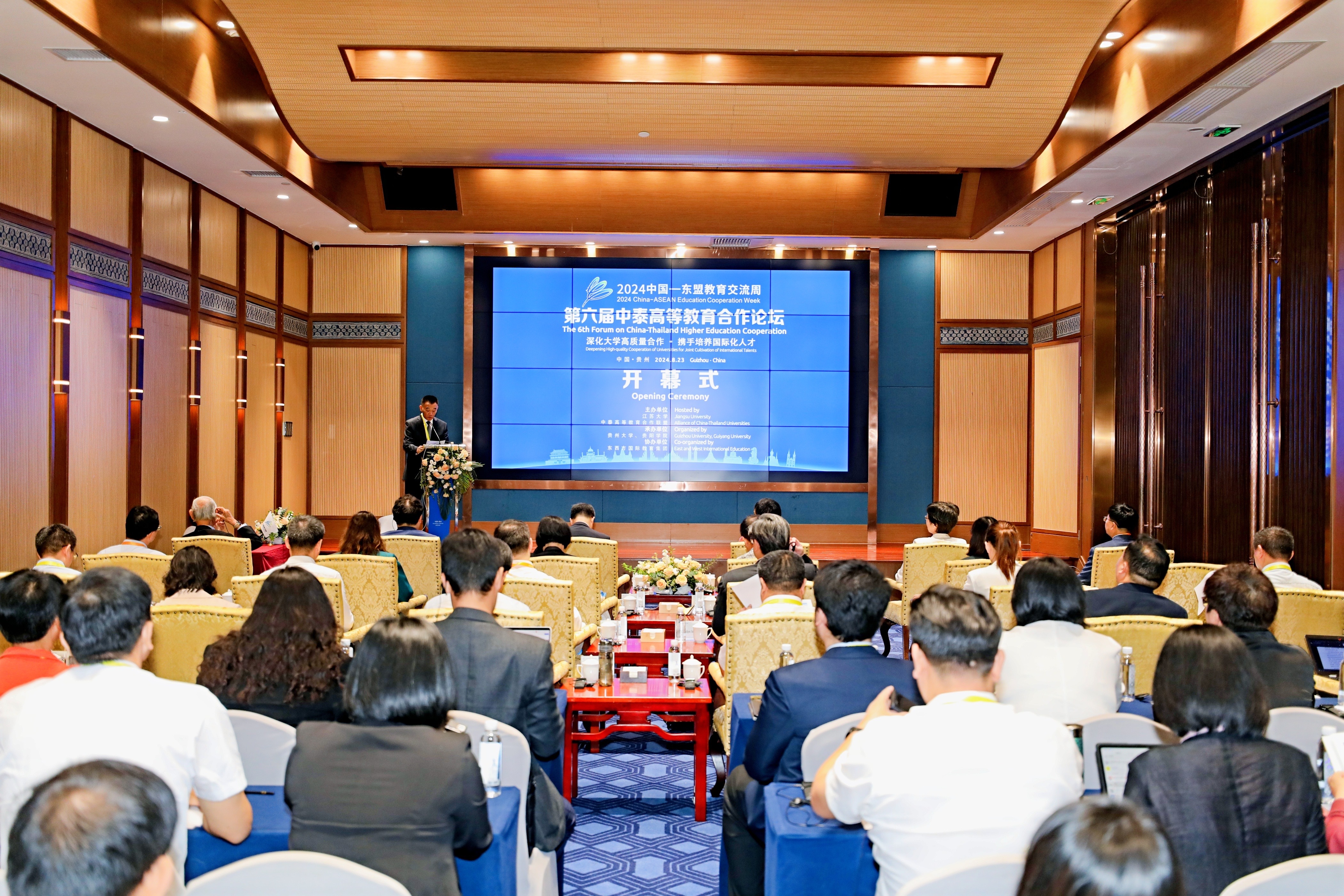 作为2024中国—东盟教育交流周开幕期活动之一,8月23日,第六届中泰高等教育合作论坛在贵阳举行。来自中泰两国的政府官员、教育界代表、高校校长、青年学生等近200人齐聚一堂,共同探讨中泰高等教育领域的合作与交流。