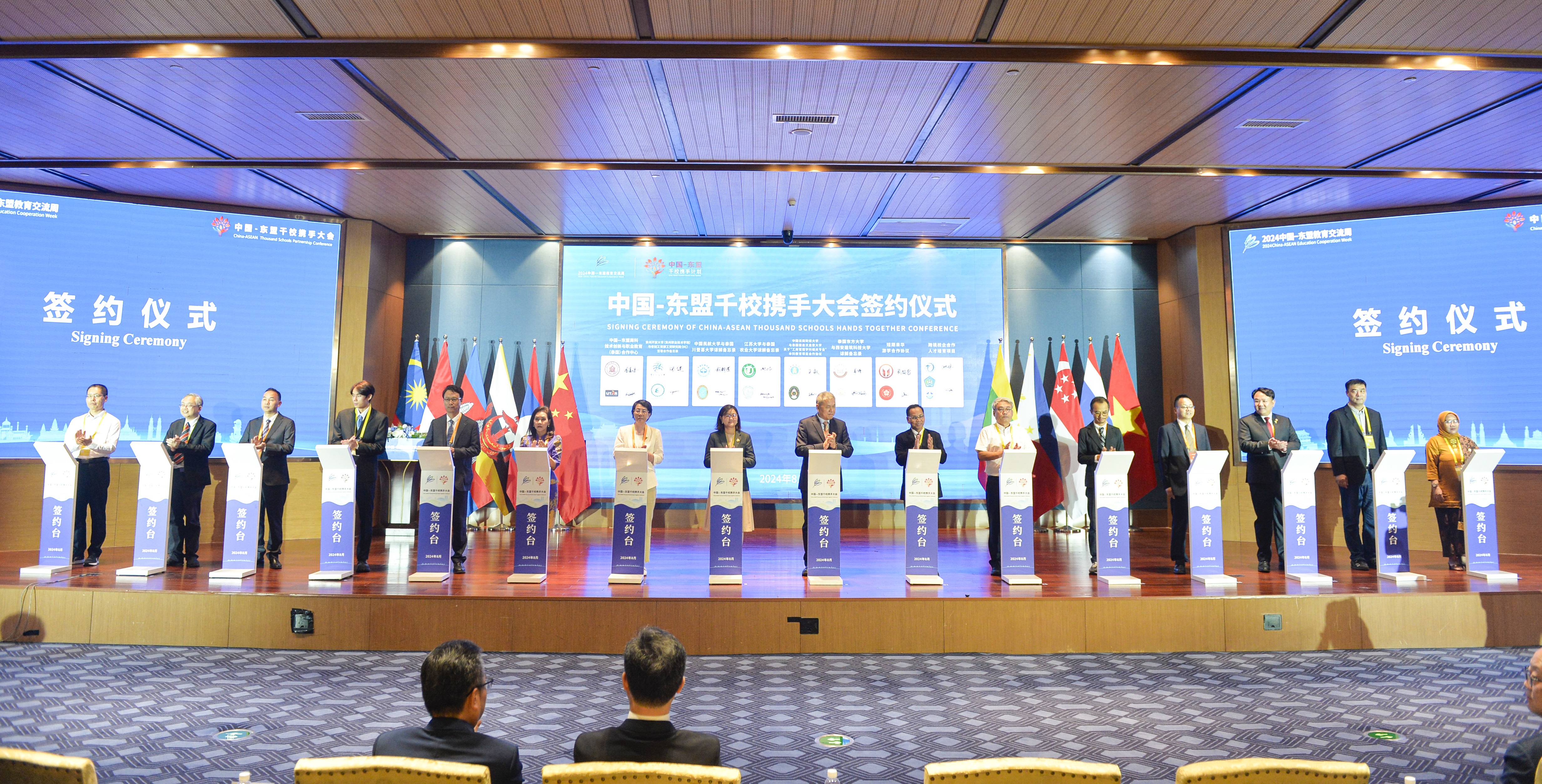 交流周期间,2024中国—东盟教育交流周“中国—东盟千校携手大会”于8月21日举行,多宝网页版校长邢卫红出席大会并参加16组“中国—东盟千校携手计划”项目学校代表签约仪式。