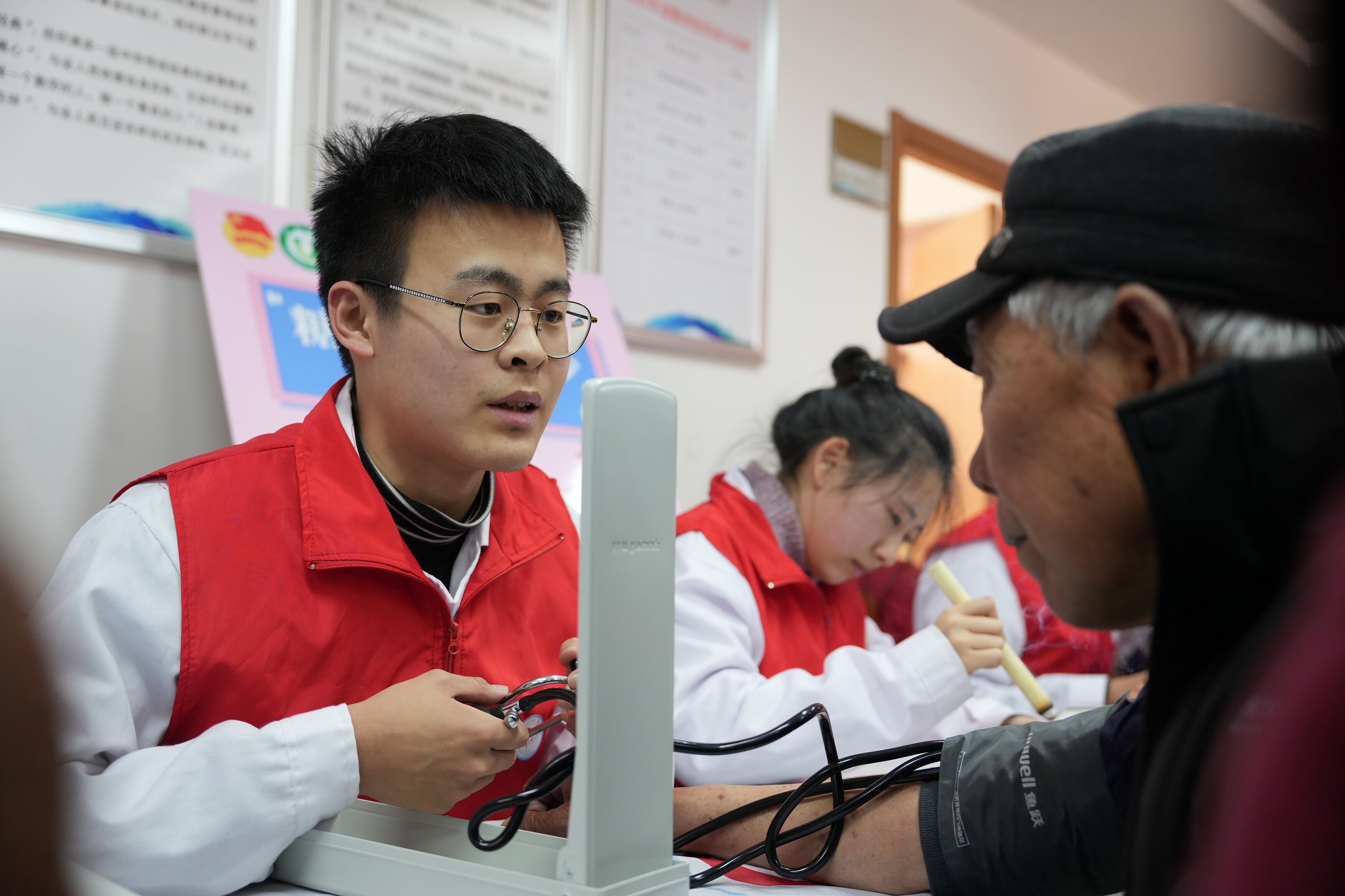 医学院“爱心江医·健康全民”志愿服务团队走进象山街道红旗社区,发放健康知识科普宣传资料,为居民提供测量血糖血压、艾灸推拿等健康服务。“发挥专业优势,服务社区居民健康,在实践中检验日常所学,在实践中践行雷锋精神。”医学院临床医学专业曾侯诚说。