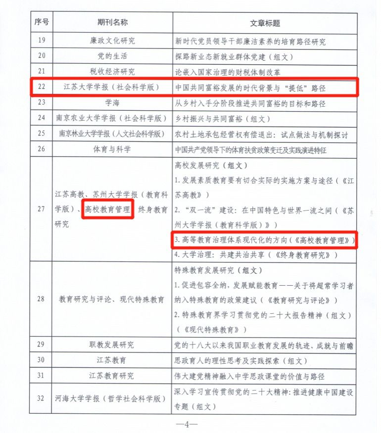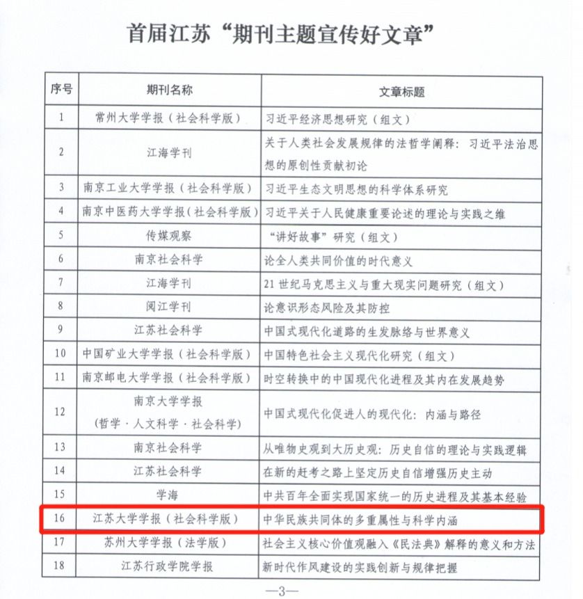 近日,江苏省新闻出版局主办、省期刊协会承办首届江苏“期刊主题宣传好文章”推荐活动,47篇(组)文章入选首届江苏“期刊主题宣传好文章”。其中,《多宝网页版学报(社会科学版)》刊发的《中华民族共同体的多重属性与科学内涵》《中国共同富裕发展的时代背景与“提低”路径》,《高校教育管理》刊发的《高等教育治理体系现代化的方向》等三篇文章成功入选。